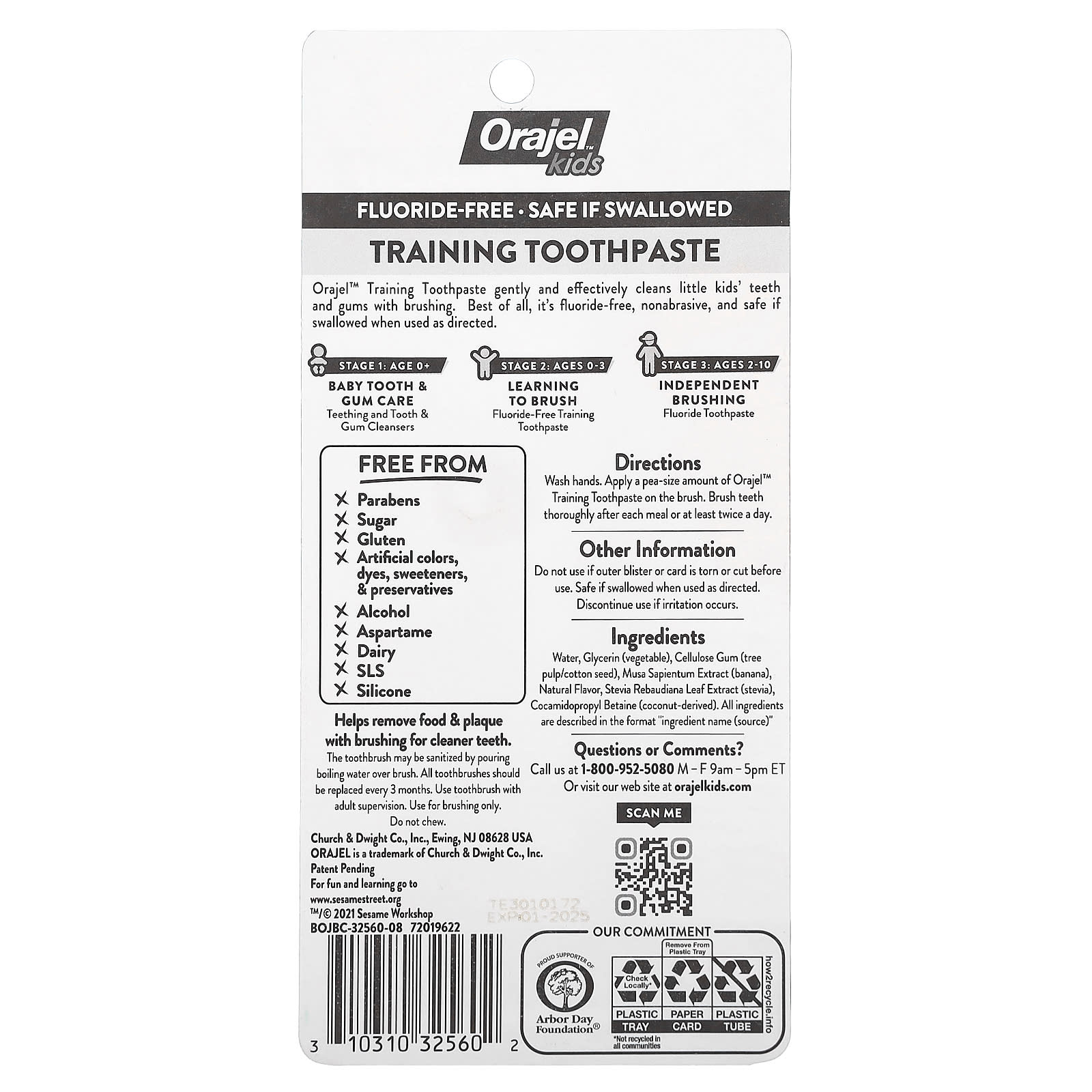 Зубная паста Orajel™ для обучения бережно и эффективно очищает зубы и десны маленьких детей во время чистки зубов. Лучше всего то, что он не содержит фтора, неабразивный и безопасен при проглатывании при использовании в соответствии с рекомендациями.