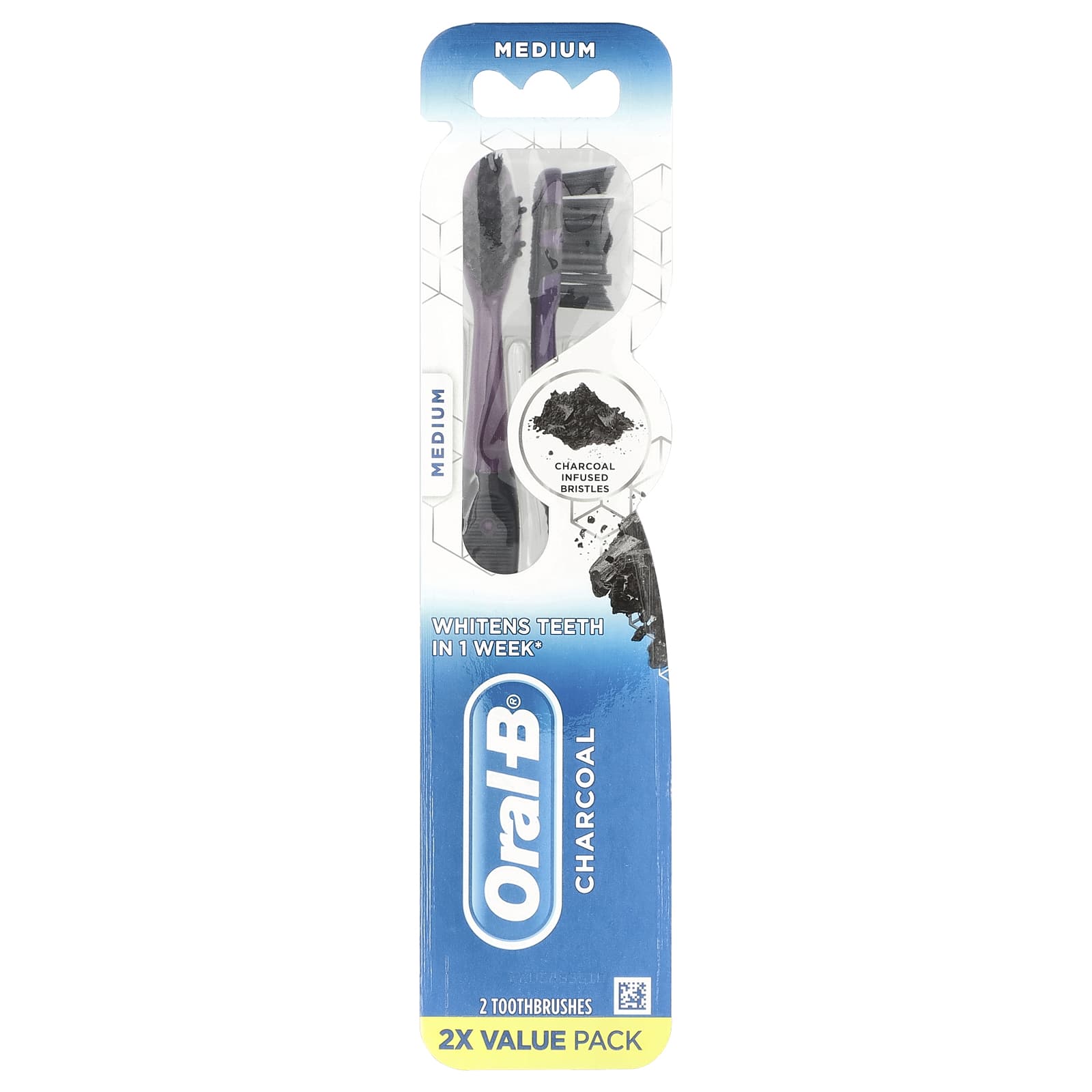 Зубная щетка Oral-B Charcoal оснащена щетиной с добавлением древесного угля! Отбеливает зубы, удаляя поверхностные пятна. Щетинки PowerTip помогают очистить зубной налет в труднодоступных местах, а массажеры для десен нежно массируют десны и помогают очистить десны. Кроме того, средство для чистки языка и щек бережно очищает язык и щеки. Отбеливает зубы, удаляя поверхностные пятна. Стоматологи рекомендуют менять щетку каждые 3 месяца.