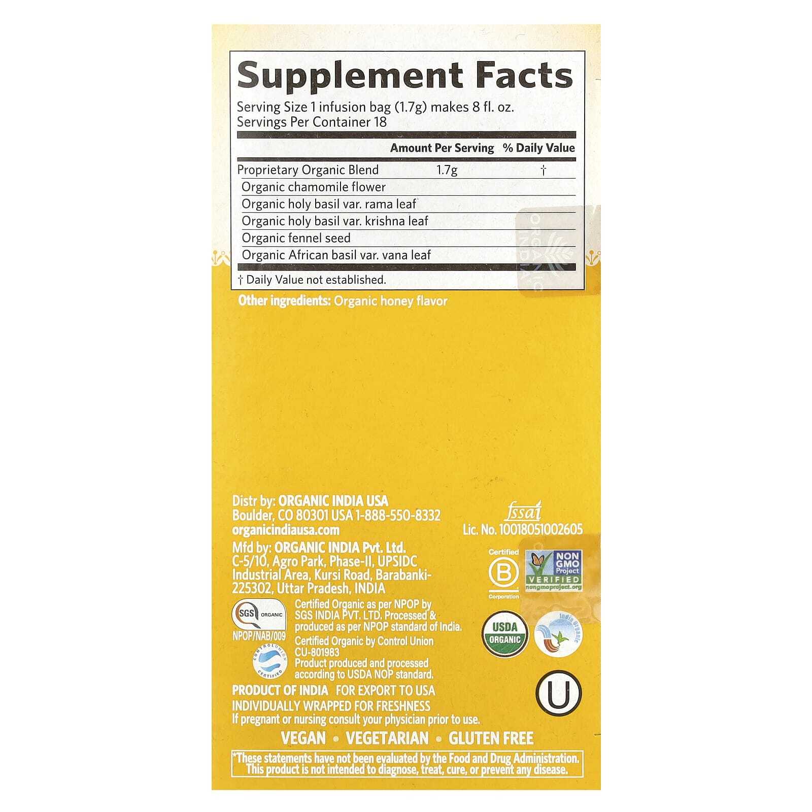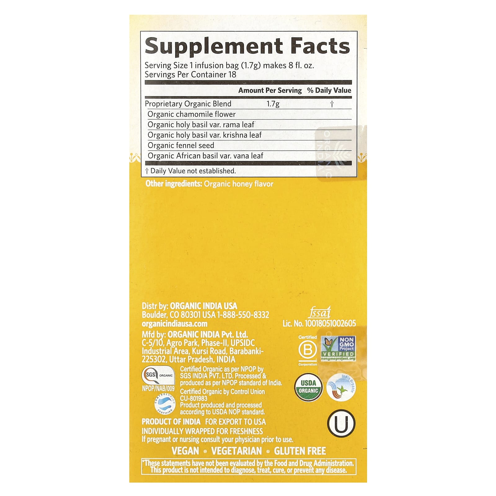 Попробуйте успокаивающее и глубокое средство тулси «королева трав», гармонично сочетающееся с мягкими ароматными цветками ромашки и вкусной эссенцией меда. Наслаждайтесь этим успокаивающим, снимающим стресс и очаровательным вкусом горячего или холодного напитка. Насладитесь чашкой чая, расслабьтесь и наслаждайтесь.