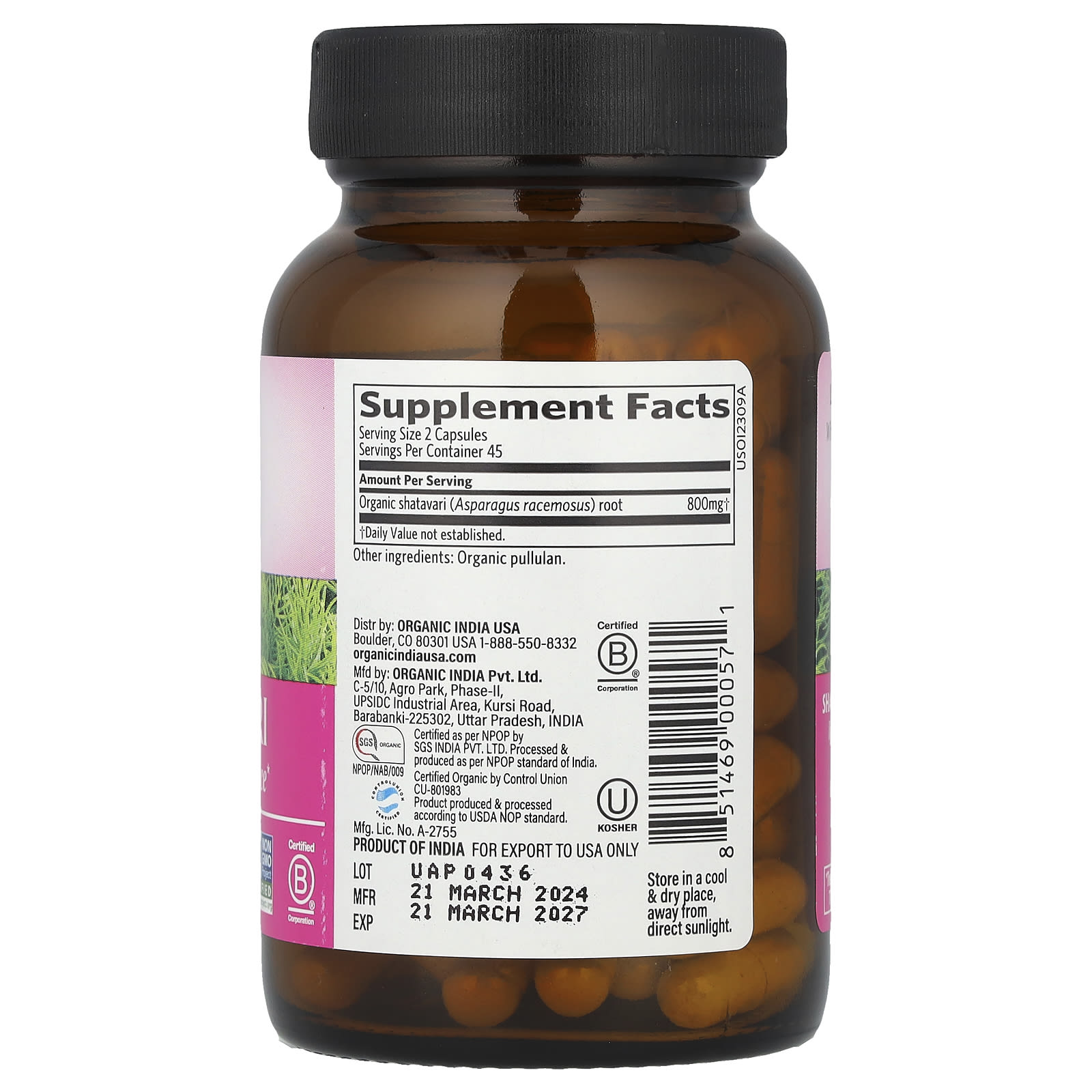 | † Органический корень шатавари (Asparagus racemosus) | 800 мг | * |