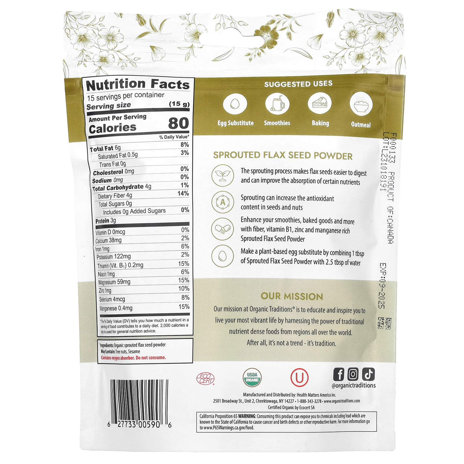 - Улучшайте свои смузи, выпечку и многое другое с помощью порошка из пророщенных семян льна, богатого клетчаткой, витамином B1, цинком и марганцем