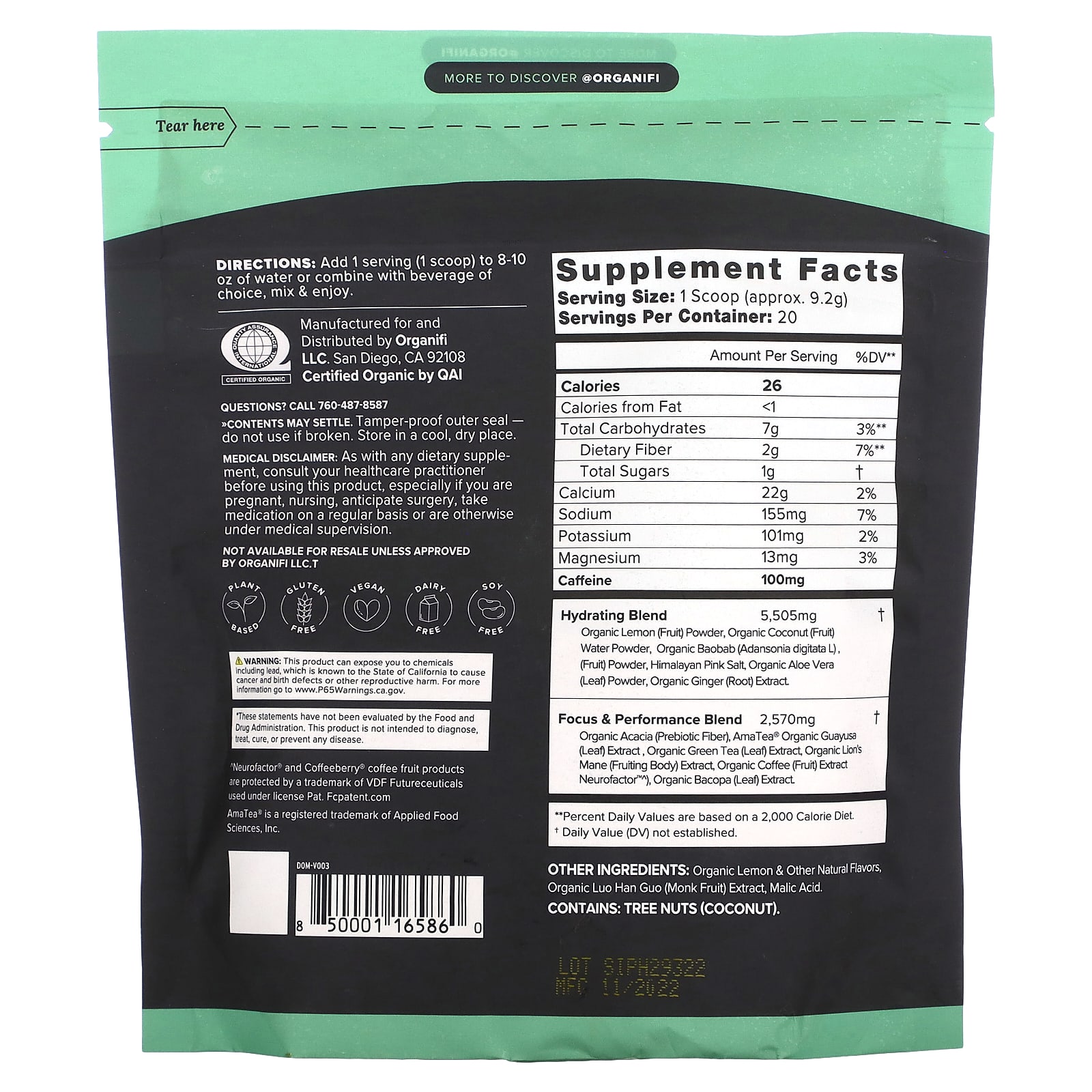 | ** Процент от суточной нормы при условии потребления 2000 калорий в день. † Суточная норма не определена. ^ Кофейные продукты Neurofactor® и Coffeeberry® защищены торговой маркой VDF Futureceuticals, используемой по лицензии. | ||
