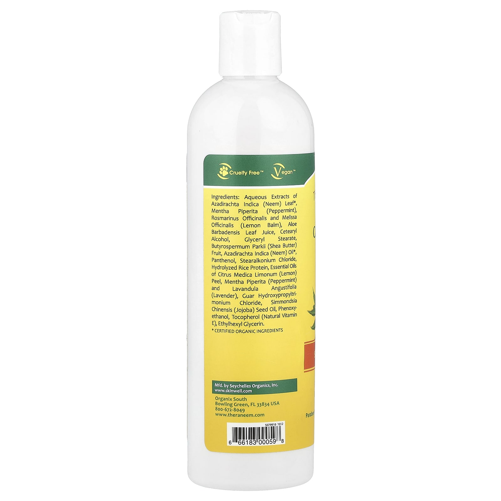 Водные экстракты листьев азадирахты указаний (neem) *, ментапипитера (мяты перечной), розмарина лекарственного и мелиссы лекарственного (лимонного бальзама), сока листьев алоэ барбаденсиса, цетеарилового спирта, глицерилстеарата, масла бутироспермума (масло ши), азадирахта указа (нима ) масло *, пантенол, стеаралконий хлорид, гидролизованный рисовый белок, эфирные масла лимонной цитрусовой личинки (лимонной), ментапипиперита (перечная мята) и лавандула ангустифолия (лаванда), гуаровая гидроксипропилтримония хлорид, масло семян симмондии хинениса (жожоба), феноксиэтанол, токоферол (натуральный витамин Е), этилгексилглицерин.