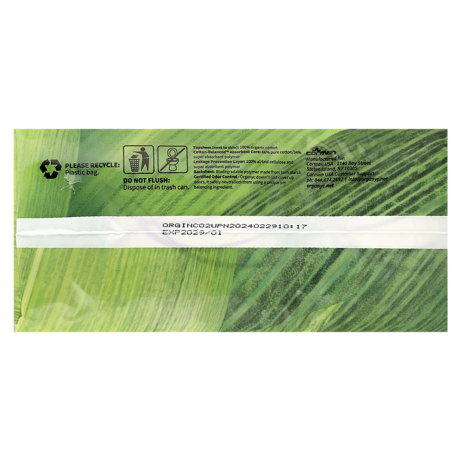Абсорбирующая сердцевина Cotton-Balanced ™: 56% чистый хлопок / 34% супервпитывающий полимер.