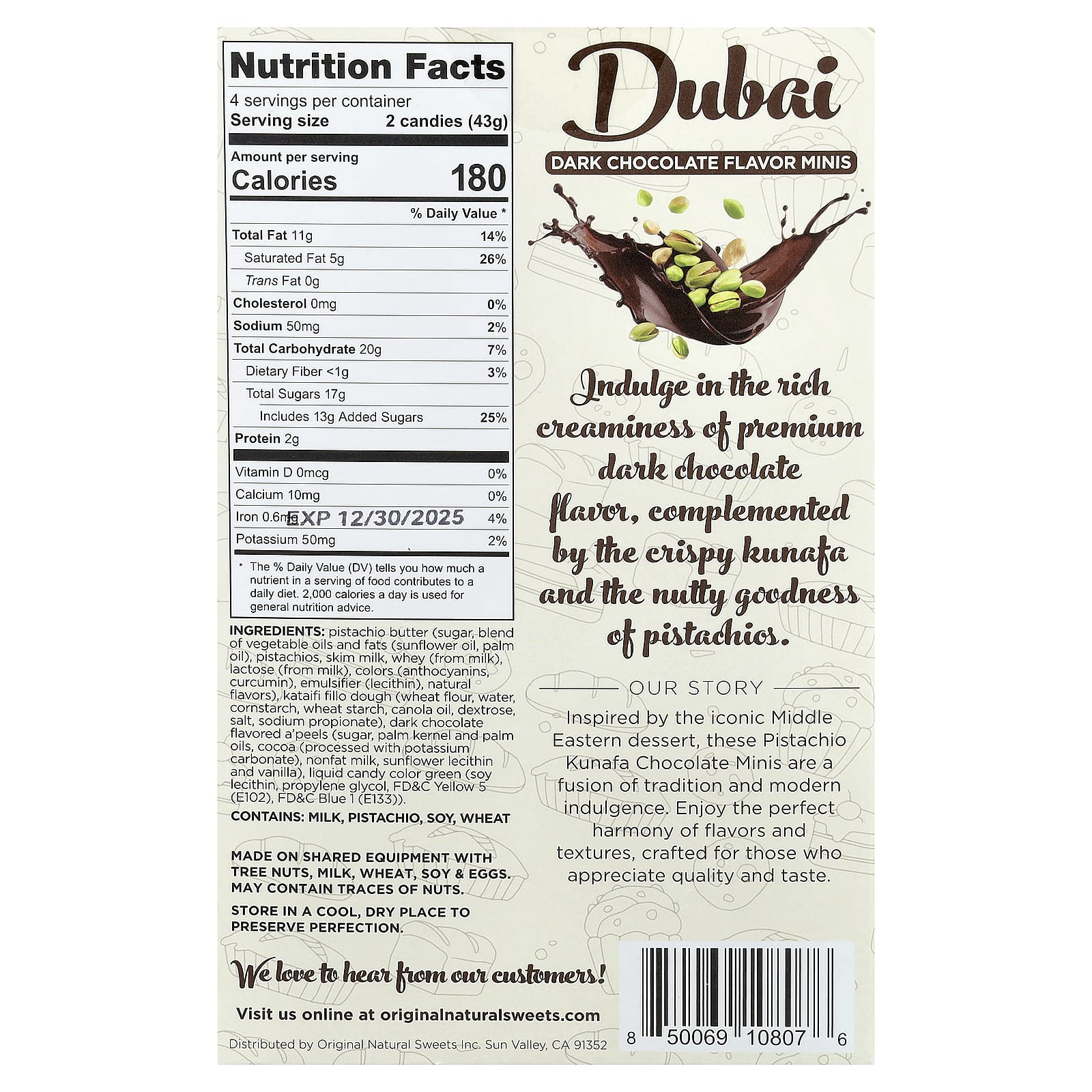 Эти шоколадные мини с фисташками и кунафой, вдохновленные культовым ближневосточным десертом, представляют собой сочетание традиций и современного наслаждения. Наслаждайтесь идеальной гармонией вкуса и текстуры, созданной для тех, кто ценит качество и вкус.