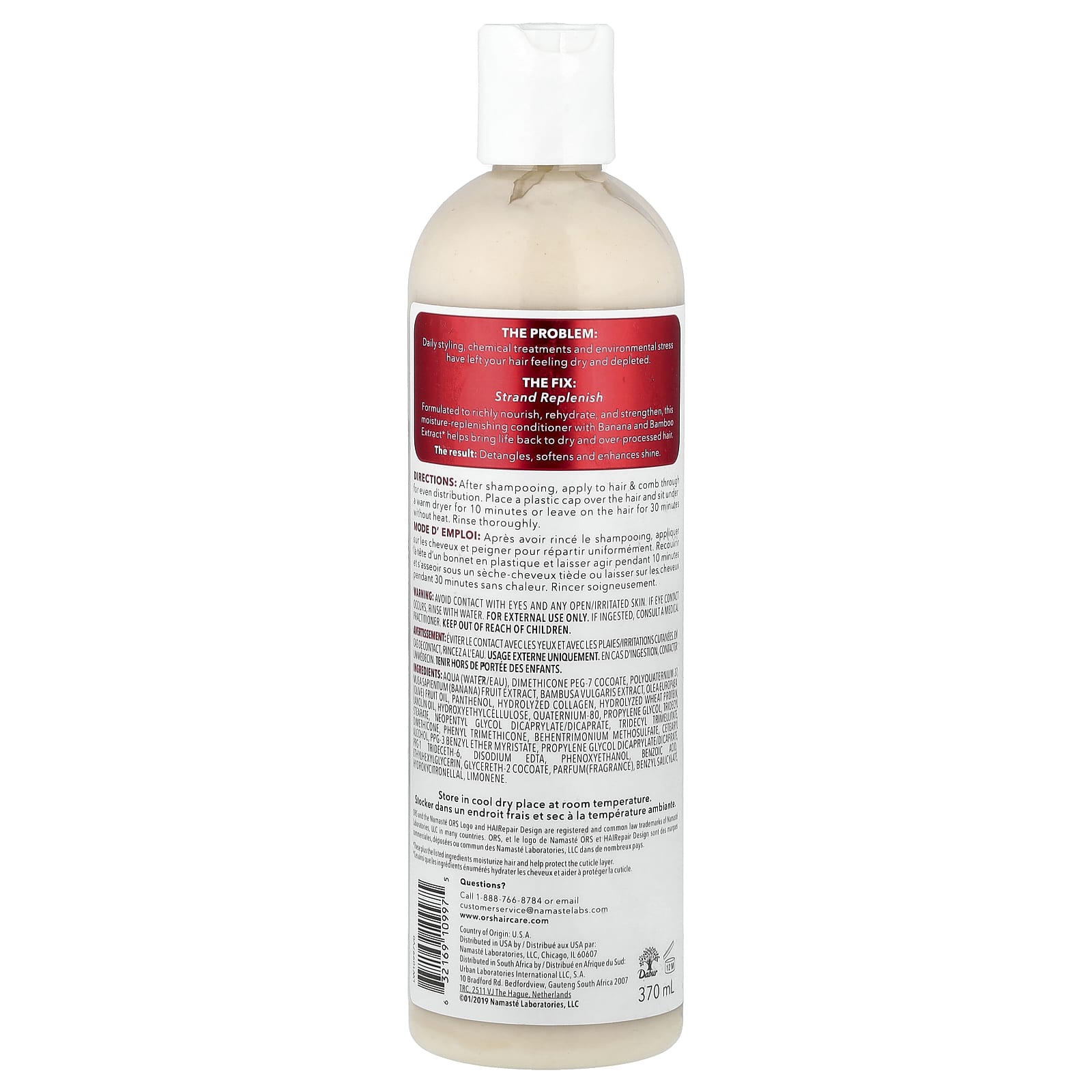 Вода, диметикон ПЭГ-7 кокоат, поликватерниум-37, экстракт плодов банана (Musa sapientum), экстракт бамбука (Bambusa vulgaris), оливковое масло (Olea europaea), пантенол, гидролизованный коллаген, гидролизованный протеин из пшеницы, ланолиновое масло, гидроксиэтилцеллюлоза, кватерний-80, пропиленгликоль, тридецил стеарат, неопентилгликоль дикаприлат/дикапрат, тридецил тримеллитат, диметикон, фенилтриметикон, бегентримония метосульфат, цетеариловый спирт, ППГ-3 бензилового эфира миристат, пропиленгликоль дикаприлат/дикапрат, ППГ-1 тридецет-6, двунатриевая ЭДТК, феноксиэтанол, бензойная кислота, этилгексилглицерин, глицерет-2 кокоат, парфюмерная композиция (отдушка), бензилсалицилат, гидроксицитронеллаль, лимонен.