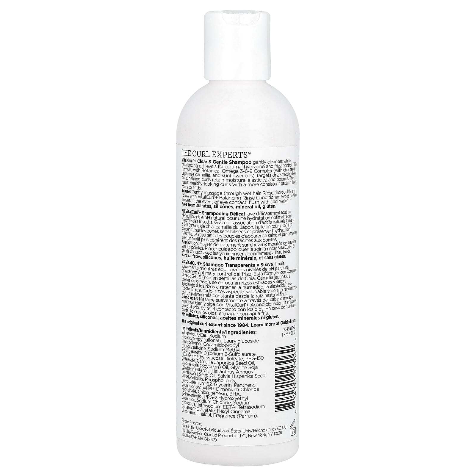 VitalCurl® + Clear & Gentle Shampoo мягко очищает, восстанавливая баланс pH для оптимального увлажнения и контроля пушения. Эта формула с растительным комплексом омега 3-6-9 (с семенами чиа, японской камелией и подсолнечным маслом) нацелена на сухие, растянутые локоны, помогая локонам сохранять влагу, эластичность и упругость. Результат: Здоровые локоны с более ровным рисунком от корней до кончиков.