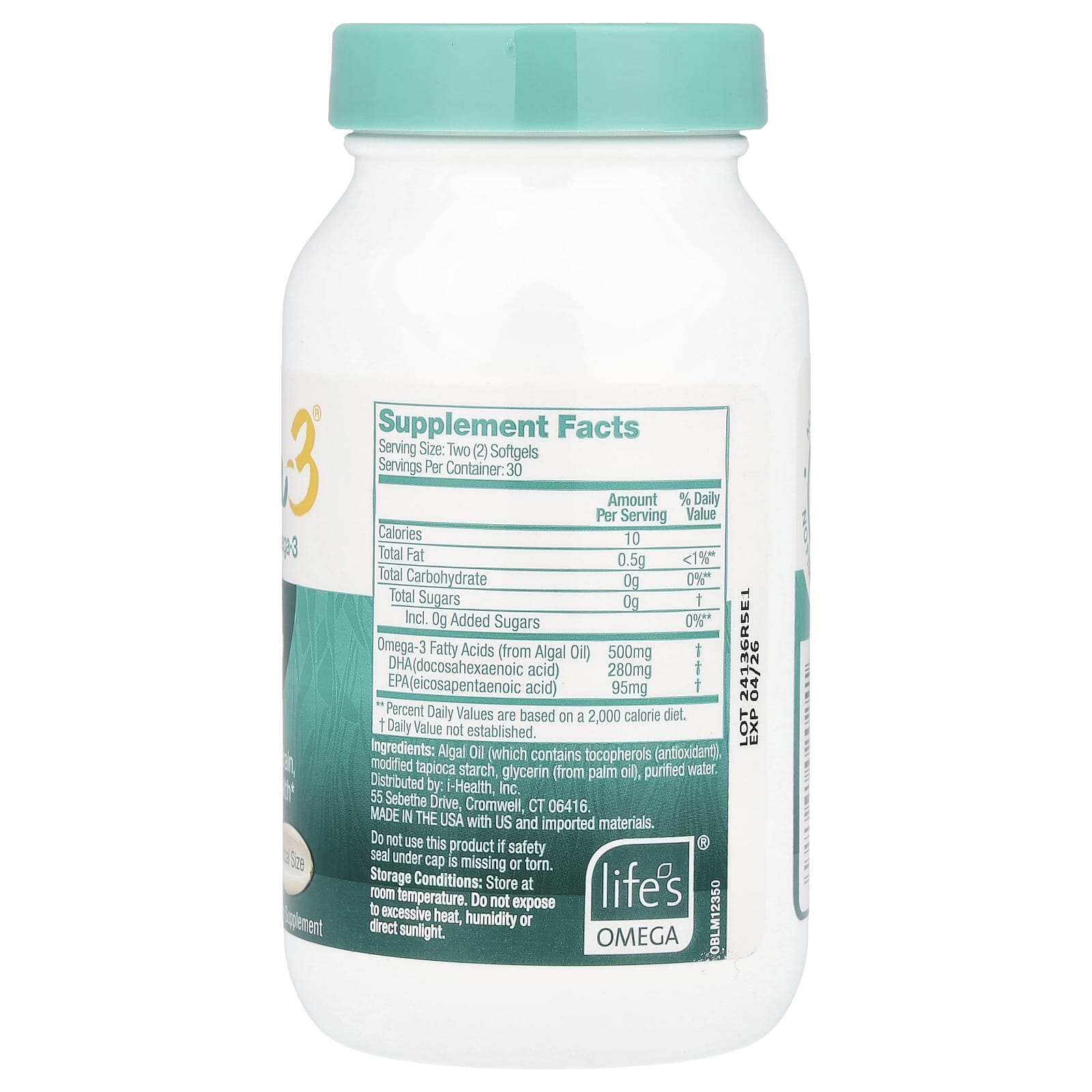 Масло из водорослей (содержит токоферолы (антиоксиданты), модифицированный тапиоковый крахмал, глицерин (из пальмового масла), очищенная вода.