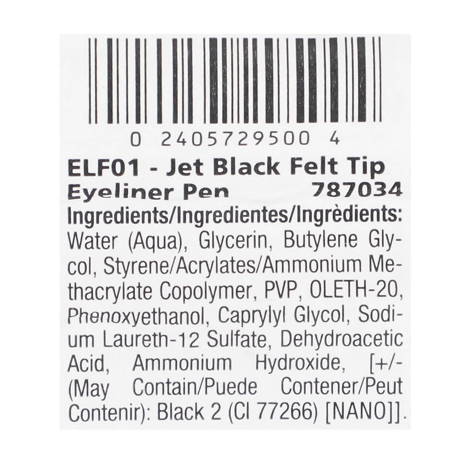 Вода (Aqua), глицерин, бутиленгликоль, сополимер стирена/акрилатов/метакрилатов аммония, ПВП, олет-20, феноксиэтанол, каприлил гликоль, лаурет-12 сульфат натрия, дегидроуксусная кислота, гидроксид аммония, [+/- (Может содержать черный 2 (Cl 77266) [нано]].