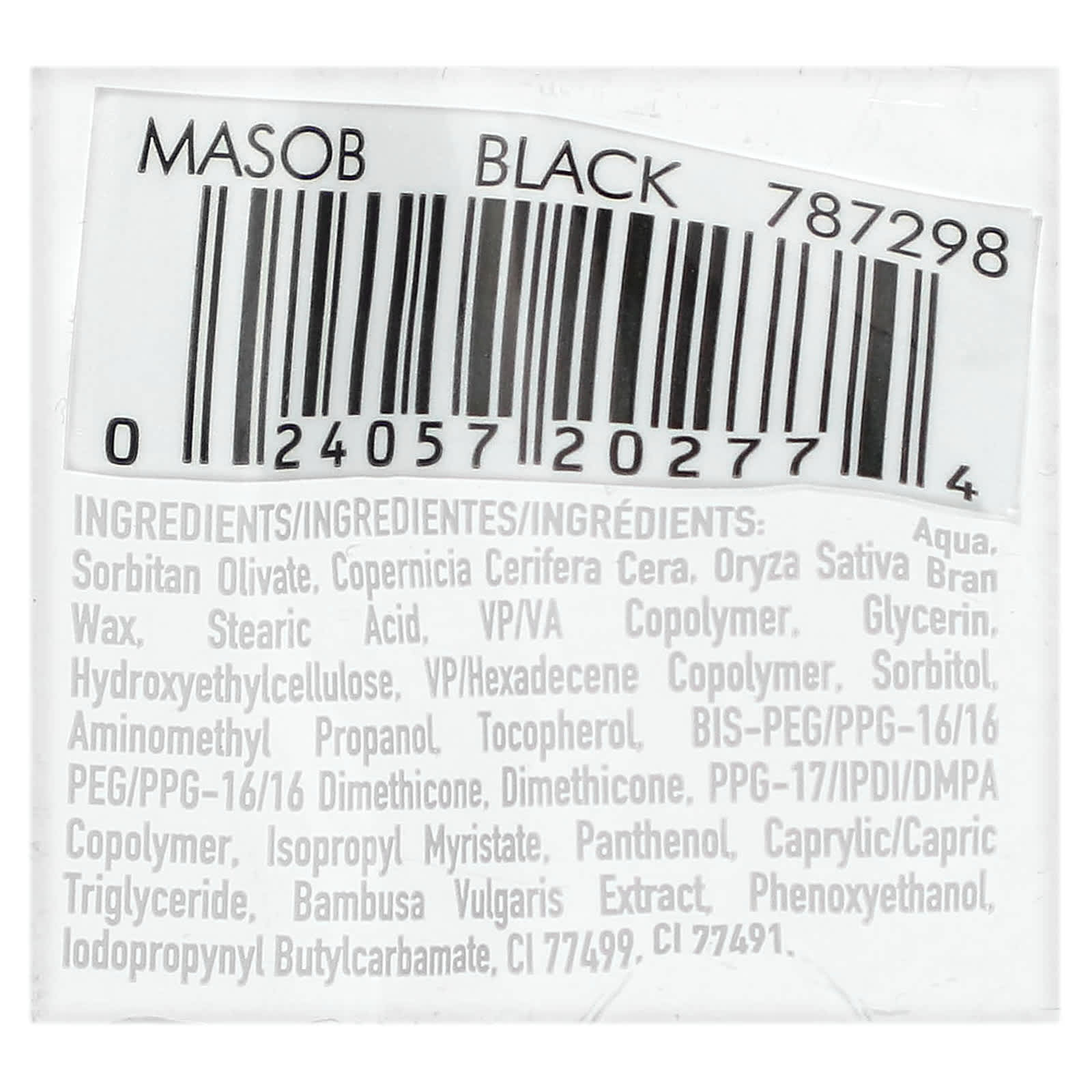Вода, сорбитан оливат, карнаубский воск (Copernicia cerifera), воск из отрубей Oryza sativa, стеариновая кислота, ВП / ва сополимер. глицерин, гидроксиэтилцеллюлоза, ВП/гексадецен сополимер, сорбитол, аминометил пропанол. токоферол, бис-ПЭГ / ППГ-16/16 ПЭГ / ППГ-16/16 диметикон, диметикон, сополимер ППГ-17 / ИПДИ / ДМПА, изопропил миристат, пантенол, каприловый/каприновый триглицерид, экстракт бамбука (Bambusa vulgaris), феноксиэтанол, йодопропинил бутилкарбамат, CI 77499), CI 77491.