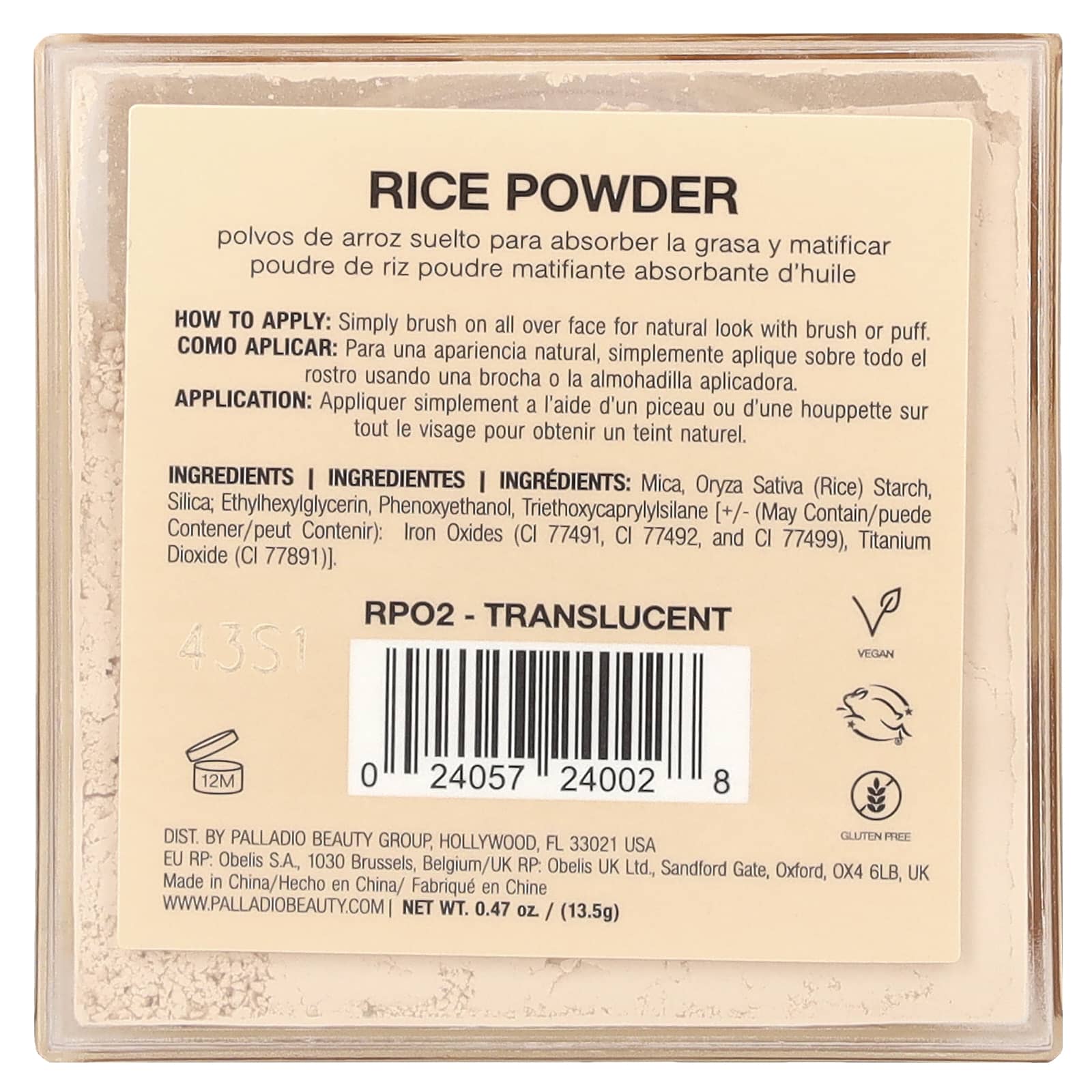 Измените свой рутинный макияж с помощью рисовой пудры Palladio, универсального ингредиента, созданного для улучшения цвета лица благодаря своей невесомой, матирующей формуле. Попрощайтесь с нежелательным блеском и получите мягкий финиш, который легко стирает поры и фиксирует макияж на несколько часов подряд. Эта легкая как перышко формула, созданная из порошка ультратонкого измельченного риса, мгновенно «фильтрует» кожу, обеспечивая стойкий матовый финиш. Готовите ли вы макияж в течение дня или поправляетесь в середине дня, эта впитывающая масло рассыпчатая пудра легко стирает недостатки, обеспечивая стойкость. Плавно впитываясь в кожу, он образует невидимую вуаль, подчеркивающую естественную красоту кожи и контролирующая излишки жира.