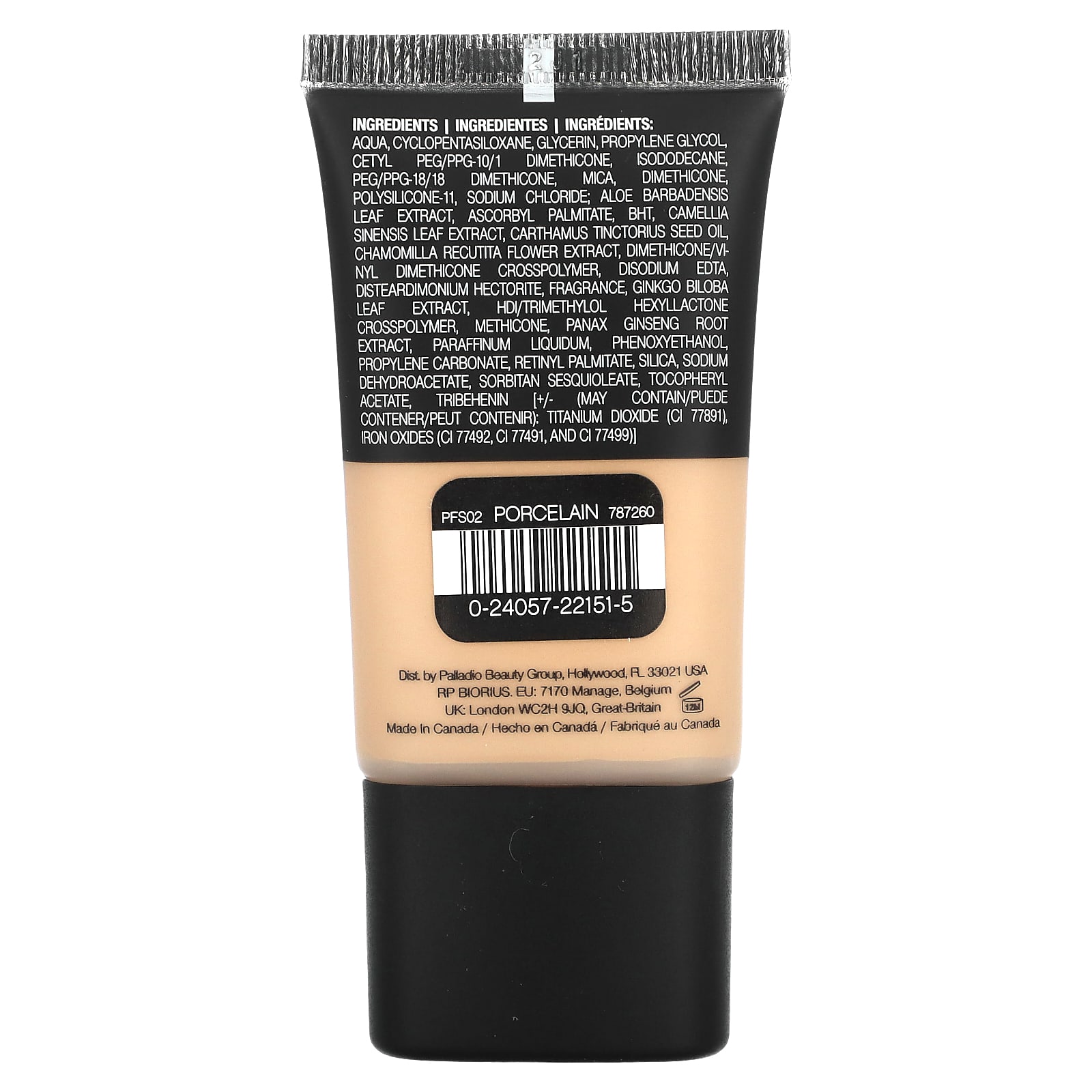 Вода, циклопентасилоксан, глицерин, пропиленгликоль, цетил ПЭГ/ППГ-10/1 диметикон, изододекан, ПЭГ/ППГ-18/18 диметикон, слюда, диметикон, полисиликон-11, хлорид натрия; экстракт листьев алоэ вера, аскорбил пальмитат, бутилгидрокситолуол, экстракт листьев зеленого чая (Camellia sinensis), масло семян сафари (Carthamus tinctorius), экстракт цветков ромашки (Chamomilla recutita), диметикон/винил диметикон кроссполимер, двунатриевая ЭДТК, дистеардимония гекторит, отдушка, экстракт листьев гинкго билоба (Ginkgo biloba), HDI/триметилол гексалактон кроссполимер, метикон, экстракт корня женьшеня (Panax ginseng), вазелиновое масло, феноксиэтанол, пропиленкарбонат, ретинилпальмитат, диоксид кремния, дегидроацетат натрия, сорбитана сесквиолеат, токоферилацетат, трибехенин [+/- (может содержать): диоксид титана (CI 77891), оксиды железа (CI 77492, CI 77491, CI 77499)].