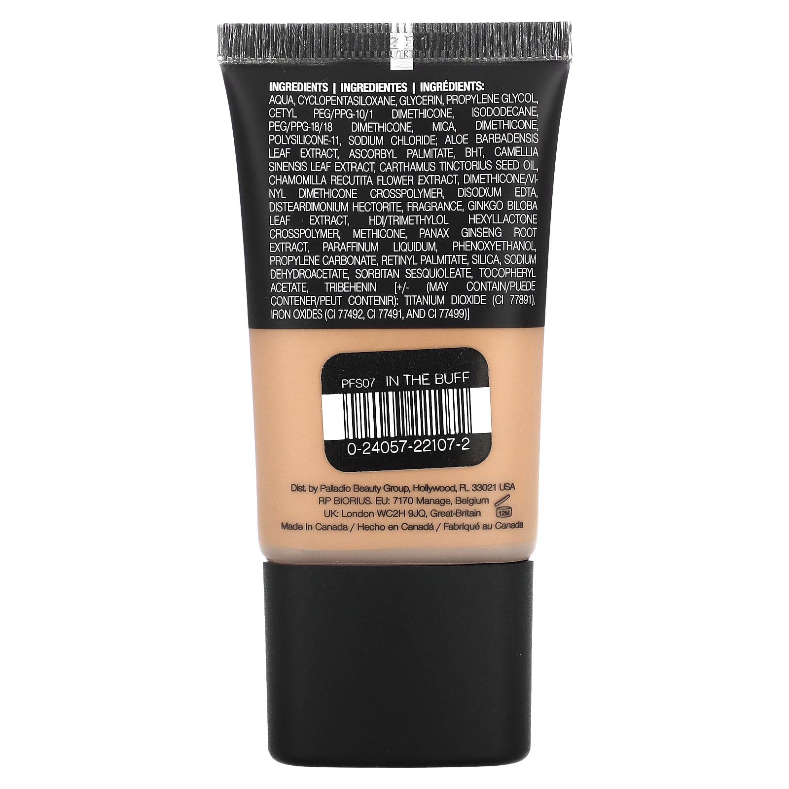 Вода, циклопентасилоксан, глицерин, пропиленгликоль, цетил ПЭГ/ППГ-10/1 диметикон, изододекан, ПЭГ/ППГ-18/18 диметикон, слюда, диметикон, полисиликон-11, хлорид натрия; экстракт листьев алоэ вера, аскорбил пальмитат, бутилгидрокситолуол, экстракт листьев зеленого чая (Camellia sinensis), масло семян сафари (Carthamus tinctorius), экстракт цветков ромашки (Chamomilla recutita), диметикон/винил диметикон кроссполимер, двунатриевая ЭДТК, дистеардимония гекторит, отдушка, экстракт листьев гинкго билоба (Ginkgo biloba), HDI/триметилол гексалактон кроссполимер, метикон, экстракт корня женьшеня (Panax ginseng), вазелиновое масло, феноксиэтанол, пропиленкарбонат, ретинилпальмитат, диоксид кремния, дегидроацетат натрия, сорбитана сесквиолеат, токоферилацетат, трибехенин [+/- (может содержать): диоксид титана (CI 77891), оксиды железа (CI 77492, CI 77491, CI 77499)].