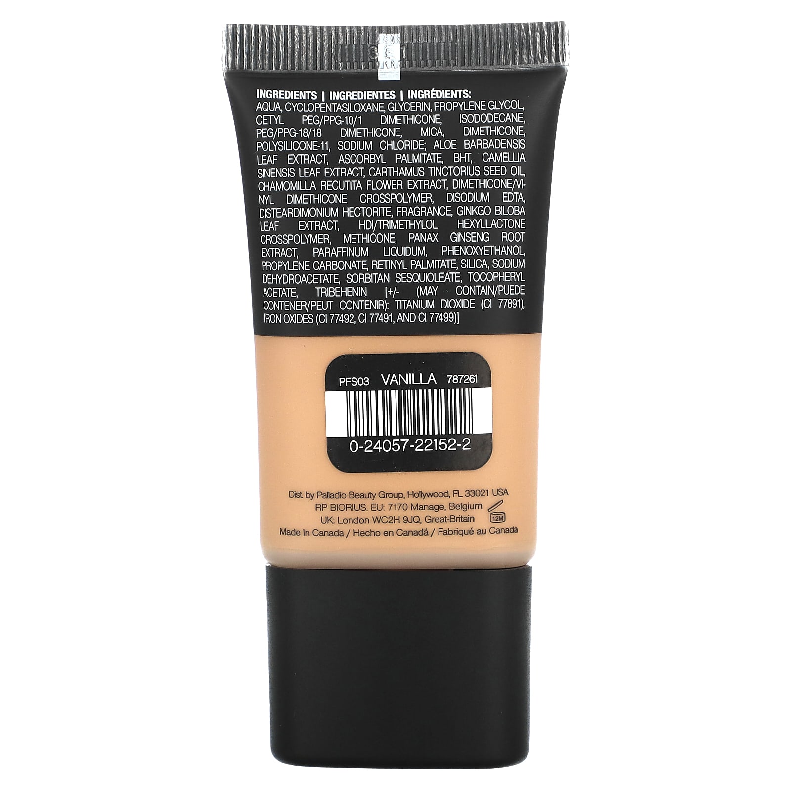 Вода, циклопентасилоксан, глицерин, пропиленгликоль, цетил ПЭГ/ППГ-10/1 диметикон, изододекан, ПЭГ/ППГ-18/18 диметикон, слюда, диметикон, полисиликон-11, хлорид натрия; экстракт листьев алоэ вера, аскорбил пальмитат, бутилгидрокситолуол, экстракт листьев зеленого чая (Camellia sinensis), масло семян сафари (Carthamus tinctorius), экстракт цветков ромашки (Chamomilla recutita), диметикон/винил диметикон кроссполимер, двунатриевая ЭДТК, дистеардимония гекторит, отдушка, экстракт листьев гинкго билоба (Ginkgo biloba), HDI/триметилол гексалактон кроссполимер, метикон, экстракт корня женьшеня (Panax ginseng), вазелиновое масло, феноксиэтанол, пропиленкарбонат, ретинилпальмитат, диоксид кремния, дегидроацетат натрия, сорбитана сесквиолеат, токоферилацетат, трибехенин [+/- (может содержать): диоксид титана (CI 77891), оксиды железа (CI 77492, CI 77491, CI 77499)].