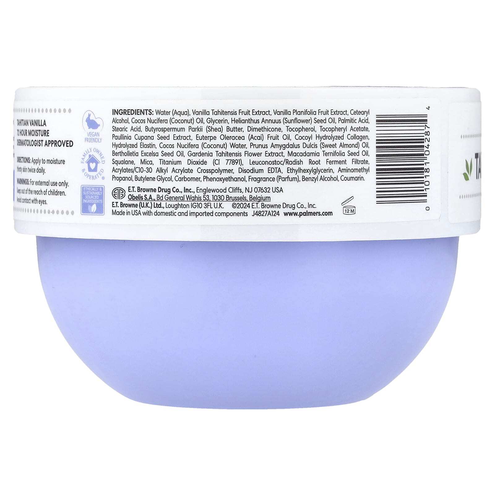 Вода, экстракт ванили таитянской (Vanilla tahitensis), экстракт ванили (Vanilla planifolia), цетеариловый спирт, кокосовое масло (Cocos nucifera), глицерин, подсолнечное масло (Helianthus annuus), пальмитиновая кислота, стеариновая кислота, масло ши (Butyrospermum parkii), диметикон, токоферол, токоферилацетат, экстракт семян гуараны (Paullinia cupana), масло ягод асаи (Euterpe oleracea), кокоил гидролизованный коллаген, гидролизованный эластин, кокосовая вода (Cocos nucifera), масло сладкого миндаля (Prunus amygdalus dulcis), масло из семян березы (Berholletia Excelsa), экстракт цветков гардении таитянской (Gardenia tahitensis), масло макадамии (Macadamia ternifolia), сквалан, слюда, диоксид титана (CI 77891), лейконосток/ферментированный фильтрат корня редиса, акрилат/c10-30 алкил акрилат кроссполимер, двунатриевая ЭДТК, этилгексилглицерин, аминометил пропанол, бутиленгликоль, карбомер, феноксиэтанол, отдушка (парфюмерная композиция), бензиловый спирт, кумарин.