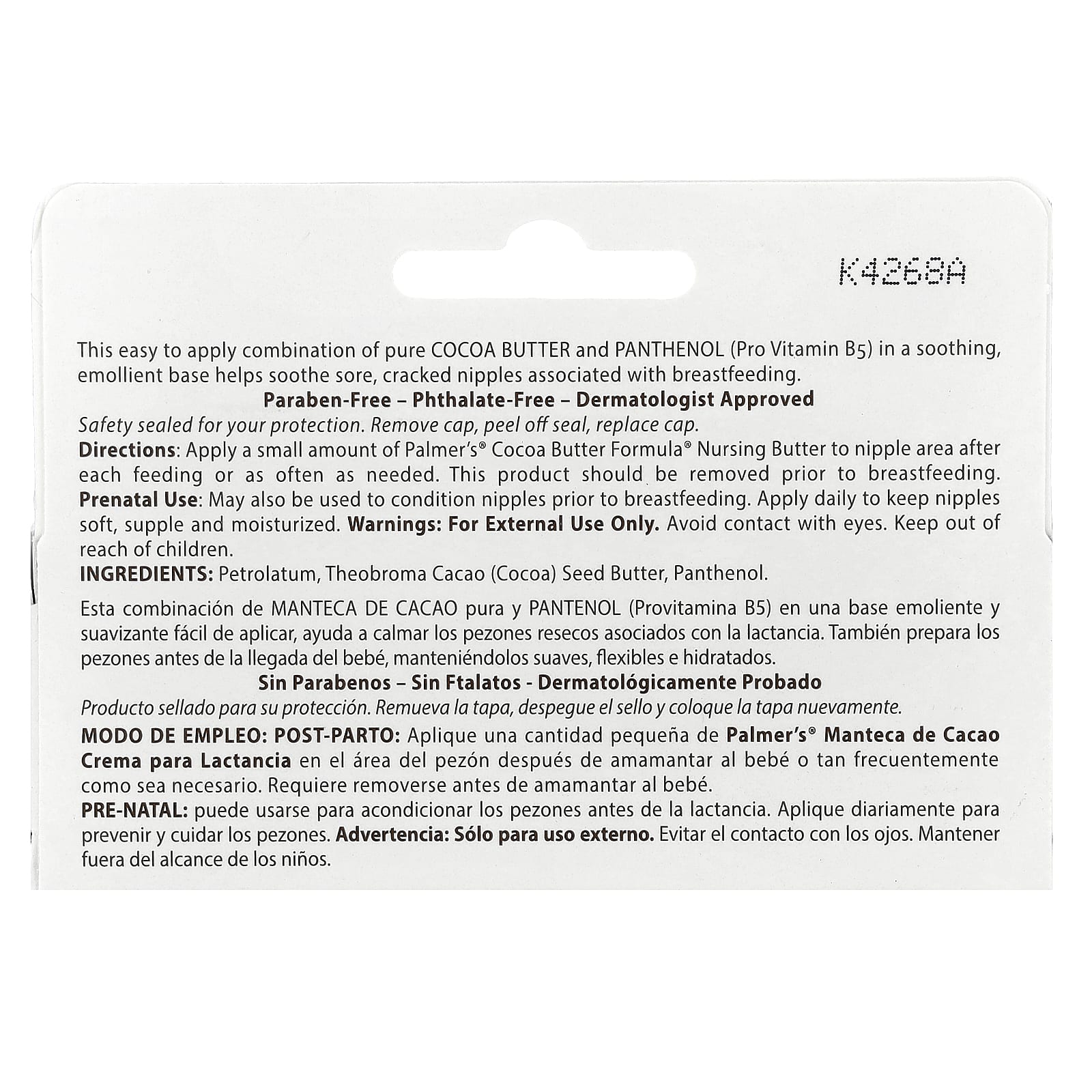 Это легкое в нанесении сочетание чистого какао-масла и пантенола (провитамина B5) в успокаивающей и смягчающей основе помогает успокоить раздраженные и потрескавшиеся соски, связанные с грудным вскармливанием.