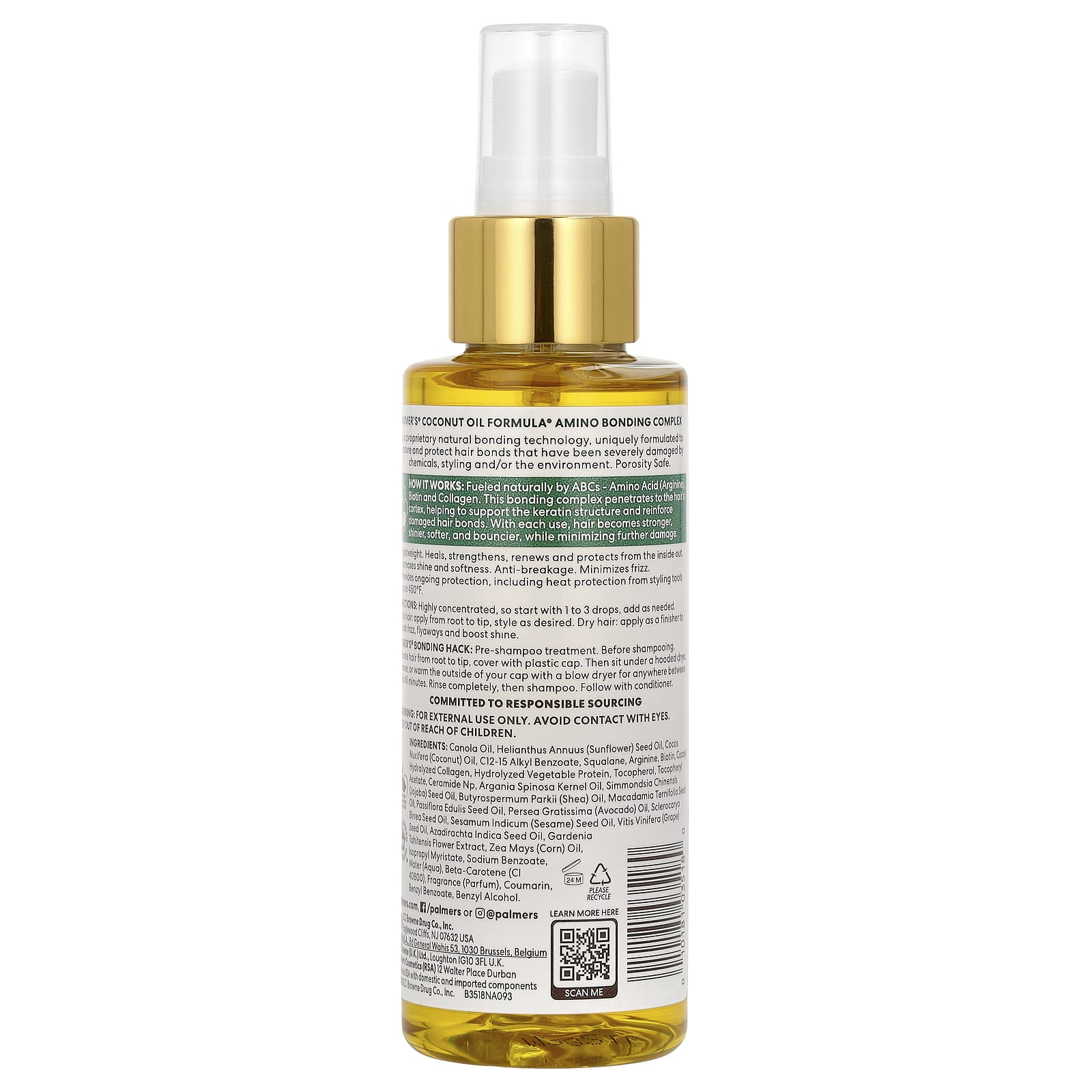 Аминокислотный комплекс Coconut Oil Formula® от Palmer's® — это запатентованная технология естественного укрепления волос, специально разработанная для сохранения и защиты волос, которые были серьезно повреждены химическими веществами, укладкой и/или окружающей среды. Безопасен для пор.