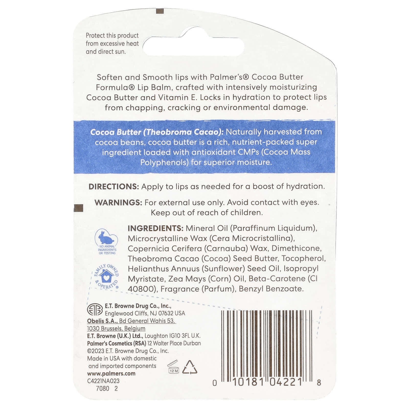 Смягчите и разгладьте губы с помощью бальзама для губ Palmer's® Cocoa Butter Formula® с SPF 15, созданного на основе интенсивно увлажняющего масла какао и витамина Е. Защищает губы от растрескивания, растрескивания и вредного воздействия солнца и ветра.