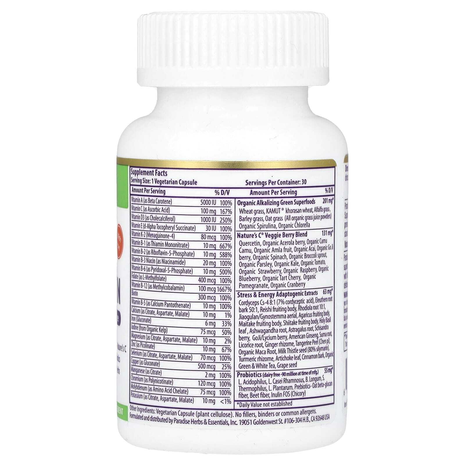 Наша мультивитаминное средство с суперфудами премиум-класса содержит адаптогенные экстракты высочайшего качества из таких растений как родиола, ашваганда, священный базилик, астрагал, лимонник и другие. Эти антистрессовые адаптогены помогают поддерживать уровень энергии, концентрации, жизнеспособность и общее хорошее самочувствие.
