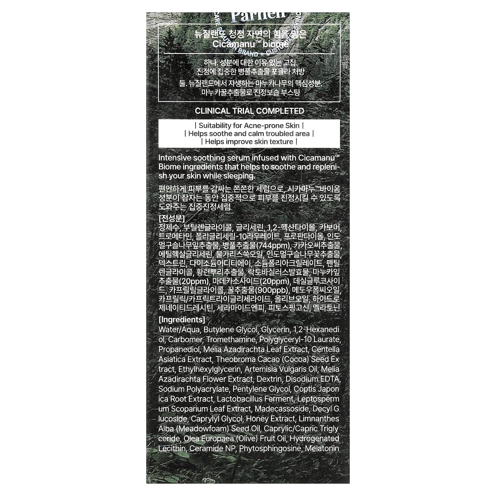 Интенсивная успокаивающая сыворотка с ингредиентами Cicamanu™ Biome помогает успокоить и восстановить кожу во время сна.