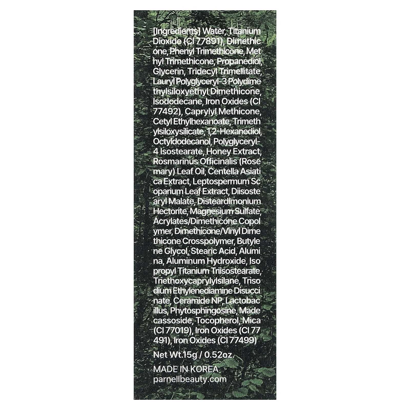 Вода, диоксид титана (CI 77891), диметикон, фенилтриметикон, метил гил триметикон, пропандиол, глицерин, тридецил тримеллитат лаурил полиглицерил-3 полидиметилсилоксиэтил диметикон, изододекан, оксиды железа (CI 77492), каприлил метикон, цетилэтилгексаноат, триметилсилоксисиликат, 1,2-гександиол октилдодеканол, полиглицерил-4 изостеарат, экстракт меда, масло из листьев розмарина (Rosmarinus officinalis), экстракт готу колы (Centella asiatica), экстракт листьев лептосперма (Leptospermum scoparium), диизостеарил малат, дистеардимония гекторит, сульфат магния, сополимер акрилатов / диметикона, диметикон/винил диметикон кроссполимер, бутиленгликоль, стеариновая кислота, оксид алюминия, гидроксид алюминия, изопропилтитана триизостеарат, триэтоксикаприлилсилан, тринатрия этилендиамин дисукцинат, керамид НП лактобак иллус, фитосфингозин, мадекассосид, токоферол слюда (CI 77019), оксиды железа (CI 77 491), оксиды железа (CI 77499).