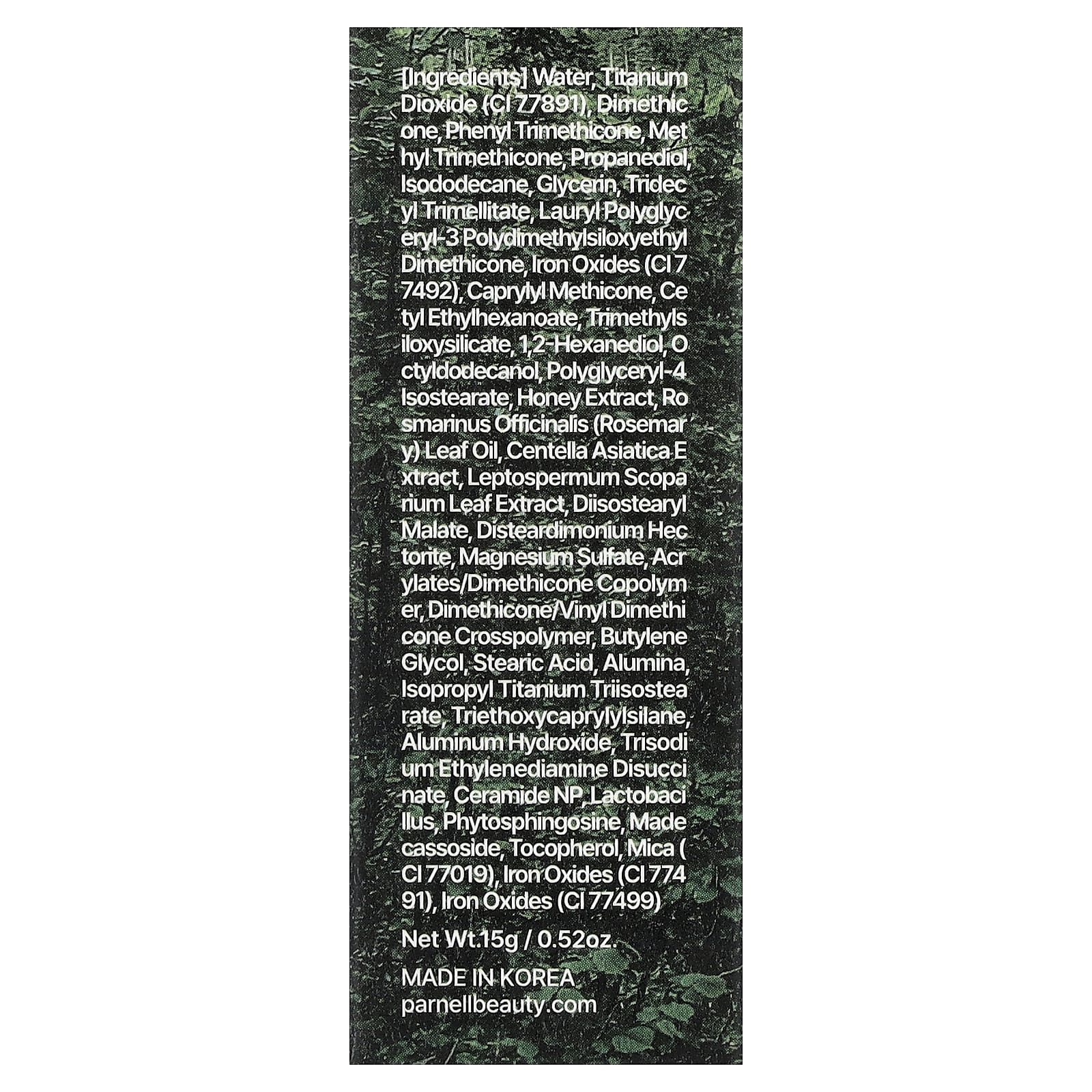 Вода, диоксид титана (CI 77891), диметикон, фенилтриметикон, метилтриметикон, пропандиальный изододекан, глицерин, тридецил тримеллитат, лаурилполиглицерил-3-полидиметилсилоксиэтилдиметикон, оксиды железа (CI 7 7492), каприлил метикон, цетилэтилгексаноат, триметилсилоксисиликат, 1,2-гександиол, октилдодеканол, полиглицерил-4 изостеарат, экстракт меда, масло из листьев розмарина (Rosmarinus officinalis), экстракт готу колы (Centella asiatica), экстракт листьев лептосперма (Leptospermum scoparium), диизостеарил малат, дистеардимония гекторит, сульфат магния, сополимер акрилатов / диметикона, диметикон/винил диметикон кроссполимер, бутиленгликоль, стеариновая кислота, оксид алюминия, изопропил титана триизостеарат триэтоксикаприлилсилан, гидроксид алюминия, тринатрий этилендиамин дисукцинат. керамиды NP Lactobacillus, фитосфингозин, мадекассосид, токоферол, слюда (CI 77019), оксиды железа (CI 774 91), оксиды железа (CI 77499).