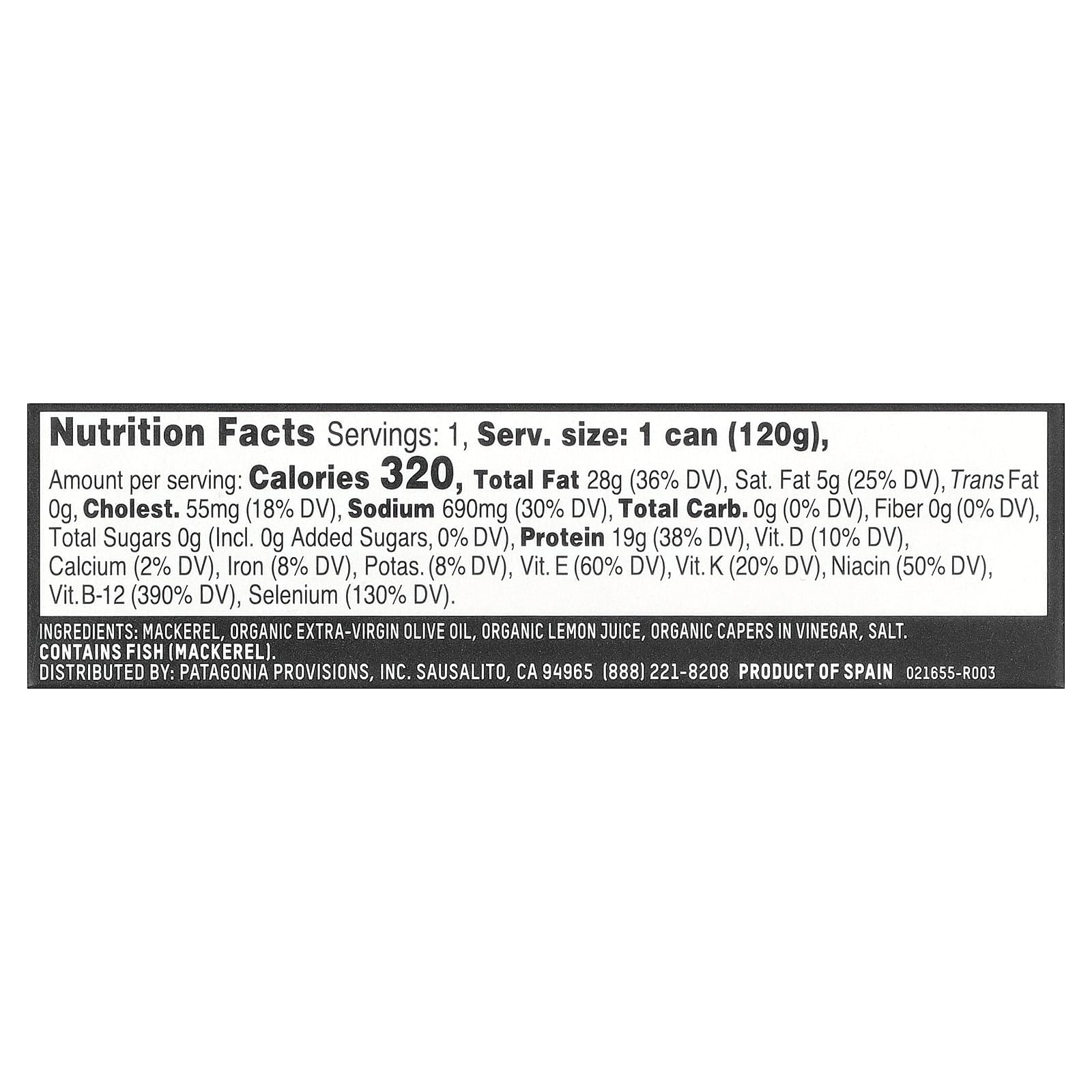 Макрель, органическое оливковое масло первого холодного отжима, органический лимонный сок, органические каперсы в уксусе, соль.