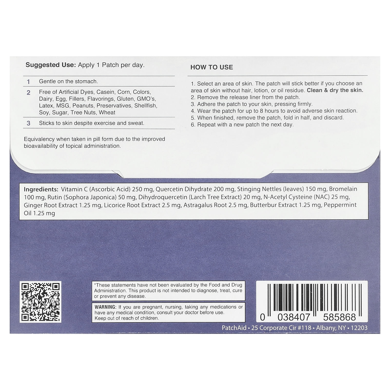 Не носите патч более 8 часов. При появлении раздражения или сыпи немедленно прекратите использование. Если раздражение кожи не проходит или усиливается, немедленно обратитесь к медицинскому работнику.