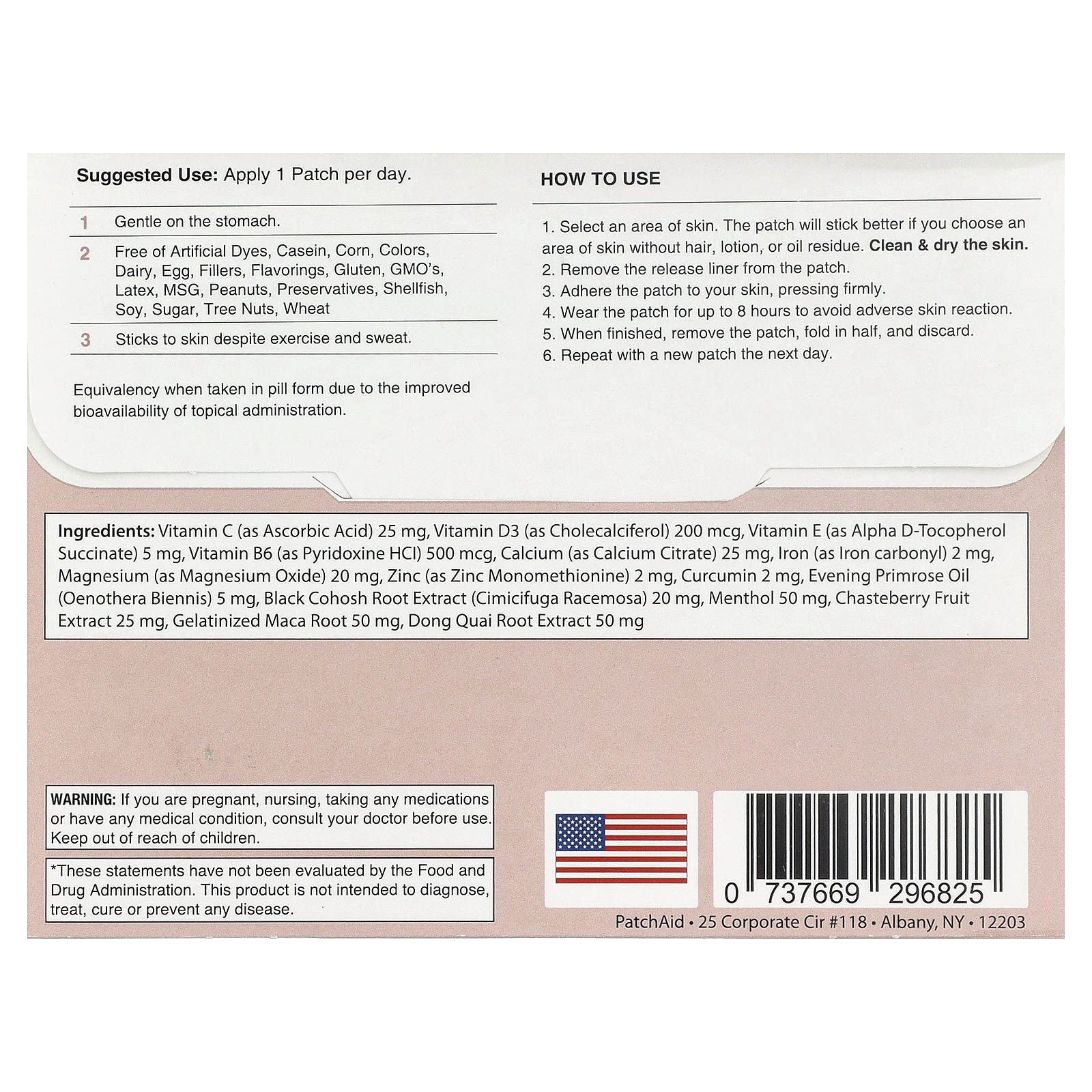 Не носите патч более 8 часов. При появлении раздражения или сыпи немедленно прекратите использование. Если раздражение кожи не проходит или усиливается, немедленно обратитесь к медицинскому работнику.