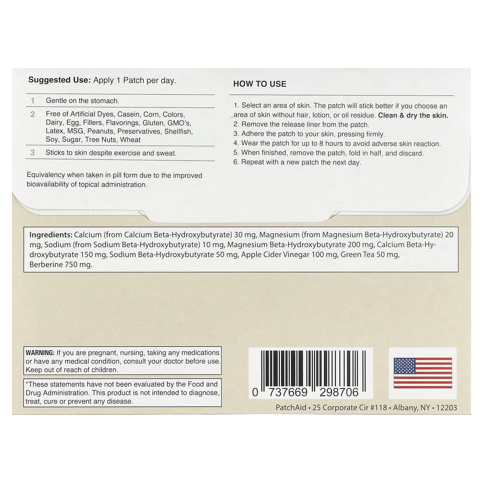 Не носите патч более 8 часов. При появлении раздражения или сыпи немедленно прекратите использование. Если раздражение кожи не проходит или усиливается, немедленно обратитесь к медицинскому работнику.