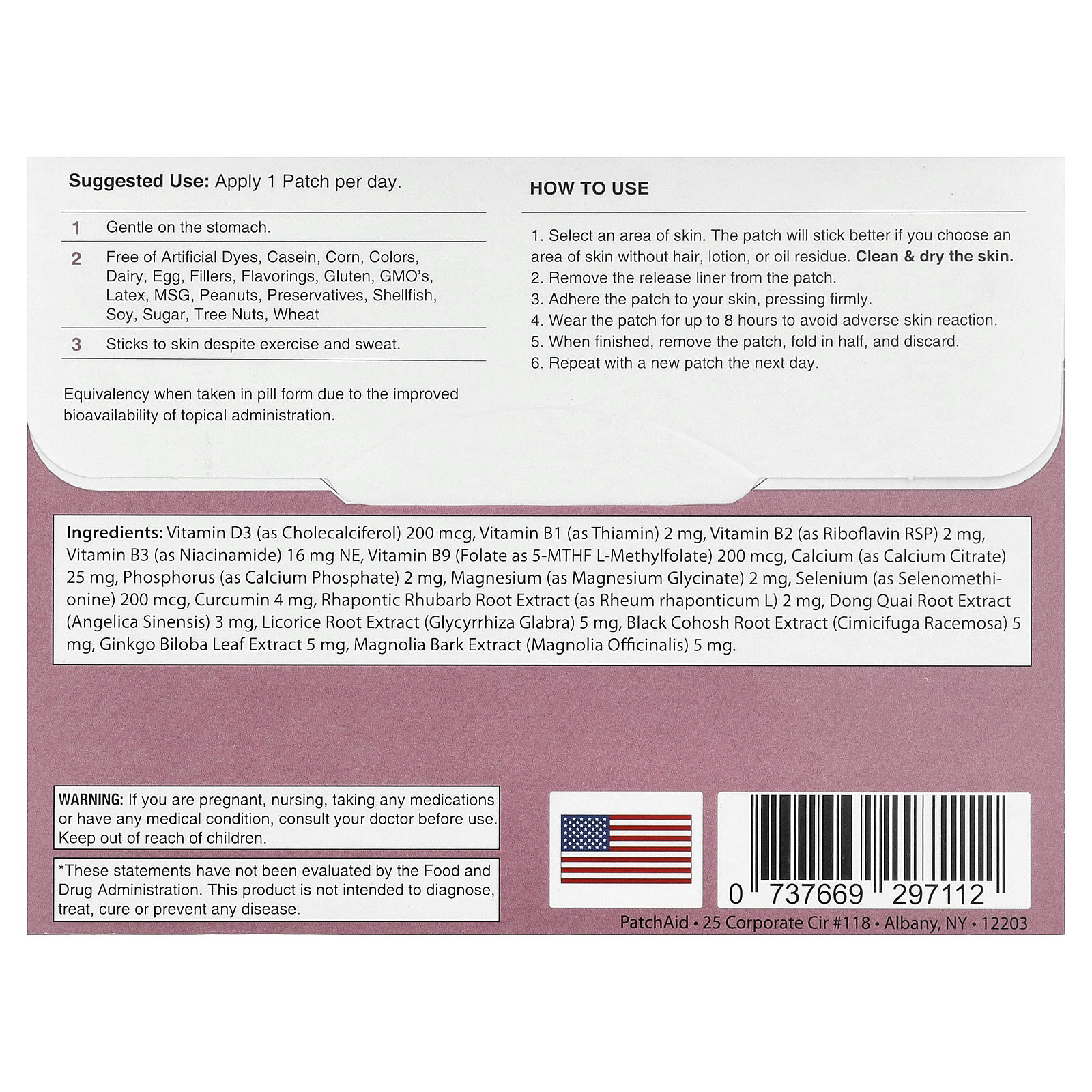 Не носите патч более 8 часов. При появлении раздражения или сыпи немедленно прекратите использование. Если раздражение кожи не проходит или усиливается, немедленно обратитесь к медицинскому работнику.
