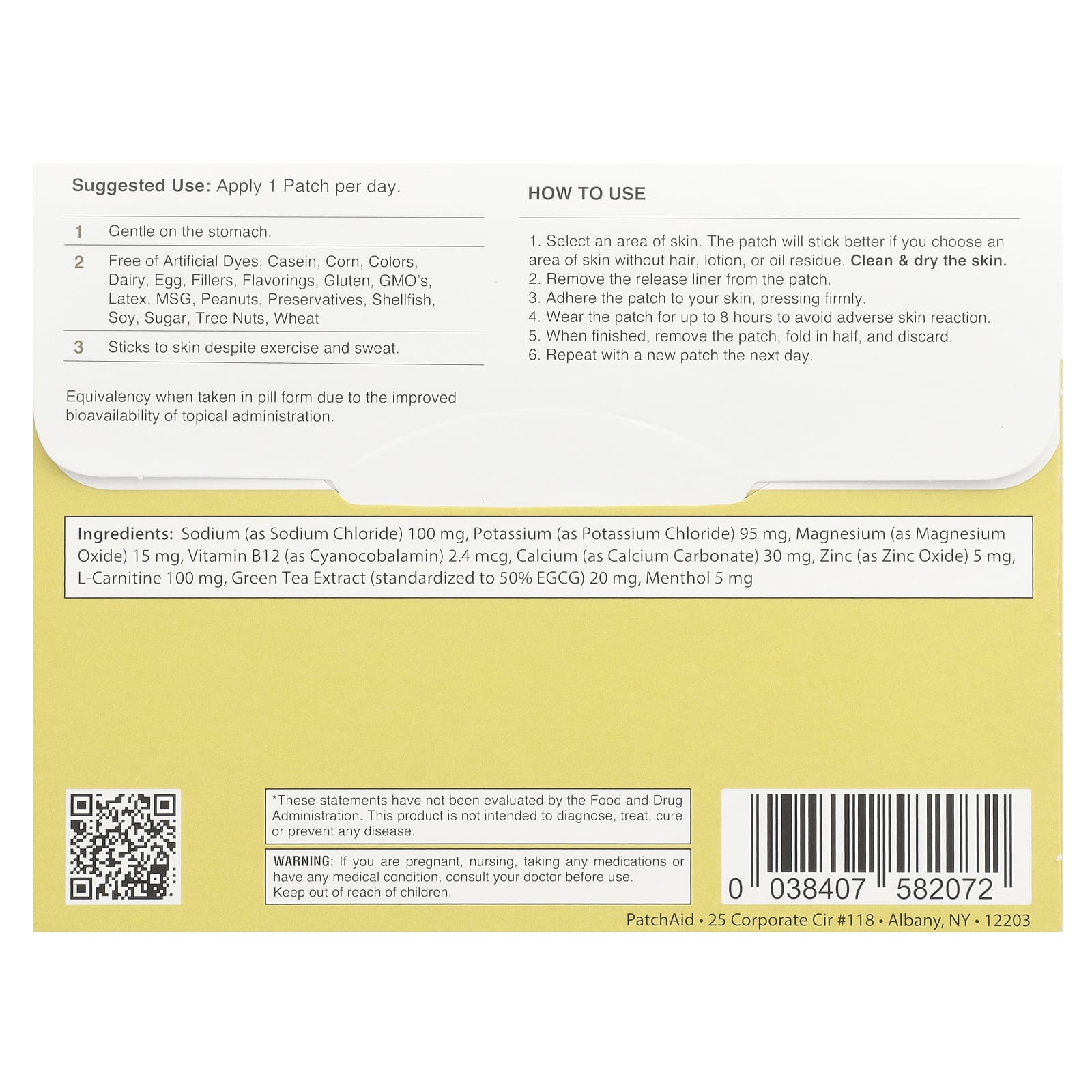 Натрий (в виде хлорида натрия) 100 мг, калий (в виде хлорида калия) 95 мг, магний (в виде оксида магния) 15 мг, витамин B12 (в виде цианокобаламина) 2,4 мкг, кальций (в виде карбоната кальция) 30 мг, цинк (в виде оксида цинка) 5 мг, L-карнитин 100 мг, экстракт зеленого чая (стандартизированный до 50%, например, 1 кг) 20 мг, ментол 5 мг.
