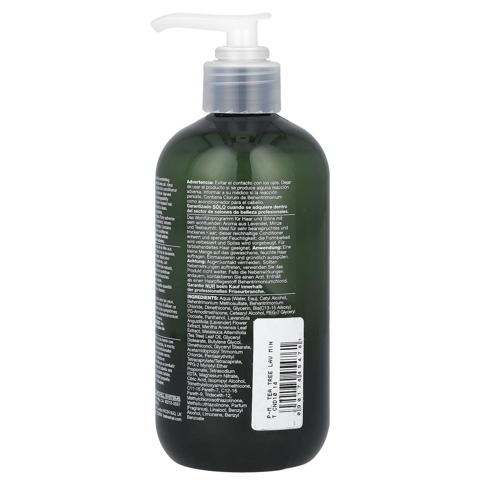 Вода, цетиловый спирт, бегентримония метосульфат, бегентримония хлорид, диметикон, глицерин, бис (c13-15 алкокси) пг-амодиметикон, цетеариловый спирт, ПЭГ-7 глицерил кокоат, пантенол, экстракт цветков лаванды (Lavandula angustifolia), экстракт листьев мяты полевой, масло из листьев чайного дерева (Melaleuca alternifolia), глицерил дистеарат, бутиленгликоль, диметиконол, глицерил стеарат, ацетамидопропил тримония хлорид, пентаэритритил тетракаприлат/тетракапрат, ППГ-2 миристиловый эфир пропионат, тетранатрия ЭДТК, нитрат магния, лимонная кислота, изопропиловый спирт, триметилсилоксиамодиметикон, c11-15 парет-7, c12-16 парет-9, тридецет-12, метилхлороизотиазолинон, метилизотиазолинон, парфюмерная композиция (отдушка), линалоол, бензиловый спирт, лимонена, бензилбензоат.