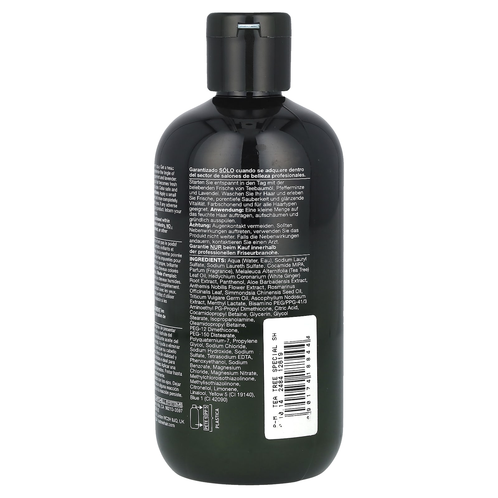 Вода, лаурилсульфата натрия, лауретсульфат натрия, кокамид моноизопропаноламина, парфюмерная композиция (отдушка), масло из листьев чайного дерева (Melaleuca alternifolia), экстракт корня имбиря (Hedychium coronarium), пантенол, экстракт алоэ вера, экстракт цветков ромашки английской (Anthemis nobilis), листья розмарина (Rosmarinus officinalis), масло семян жожоба (Simmondsia chinensis), масло зародышей Triticum vulgare, экстракт аскофиллума (Ascophyllum nodosum), ментил лактат, бисамино ПЭГ / ППГ-41/3 аминоэтил пг-пропил диметикон, лимонная кислота, кокамидопропилбетаин, глицерин, гликоль стеарат, изопропаноламин, олеамидопропил бетаин, ПЭГ-12 диметикон, ПЭГ-150 дистеарат, поликватерниум-7, пропиленгликоль, хлорид натрия, гидроксид натрия, сульфат натрия, тетранатрия ЭДТК, феноксиэтанол, бензоат натрия, хлорид магния, нитрат магния, метилхлороизотиазолинон, метилизотиазолинон, цитронеллола, лимонен, линалоол, желтый 5 (CI 19140), краситель синий 1 (CI 42090).