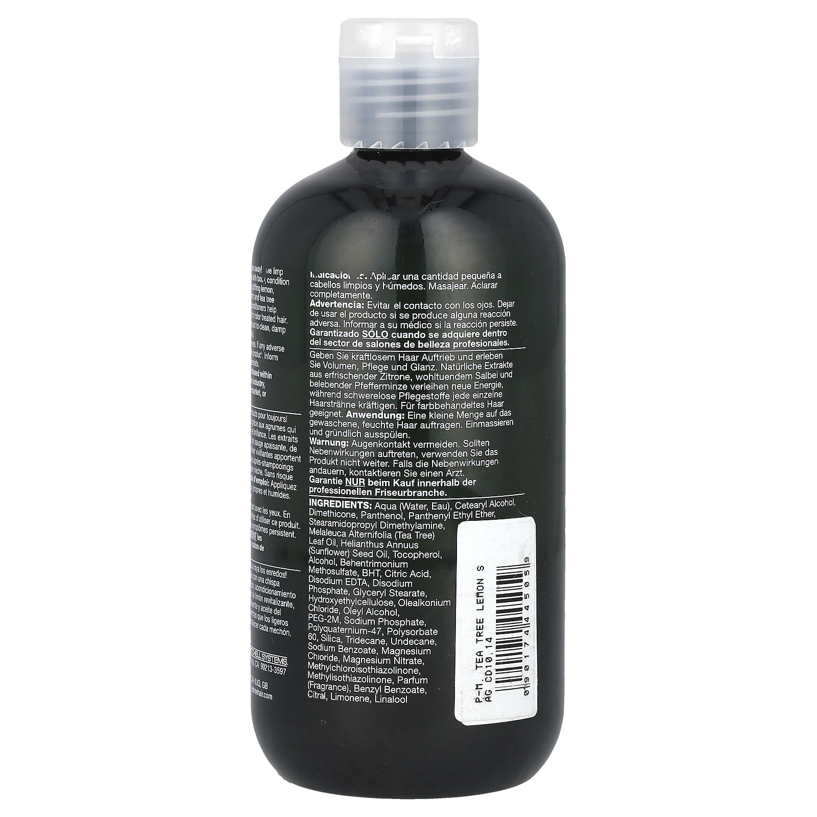 Вода (Aqua, вода), цетеариловый спирт, диметикон, пантенол, пантенил этиловый эфир, стеарамидопропил диметиламин, масло из листьев чайного дерева (Melaleuca alternifolia), подсолнечное масло (Helianthus annuus), токоферол, спирт, бегентримония метосульфат, бутилгидрокситолуол, лимонная кислота, двунатриевая ЭДТК, динатрия фосфат, глицерил стеарат, гидроксиэтилцеллюлоза, хлорид олеалкония, олеиловый спирт, ПЭГ-2М, фосфат натрия, поликватерниум-47, полисорбат 60, диоксид кремния, тридекан, ундекан, бензоат натрия, хлорид магния, нитрат магния, метилхлороизотиазолинон, метилизотиазолинон, парфюмерная композиция (отдушка), бензилбензоат, цитраль, лимонена, линалоол.