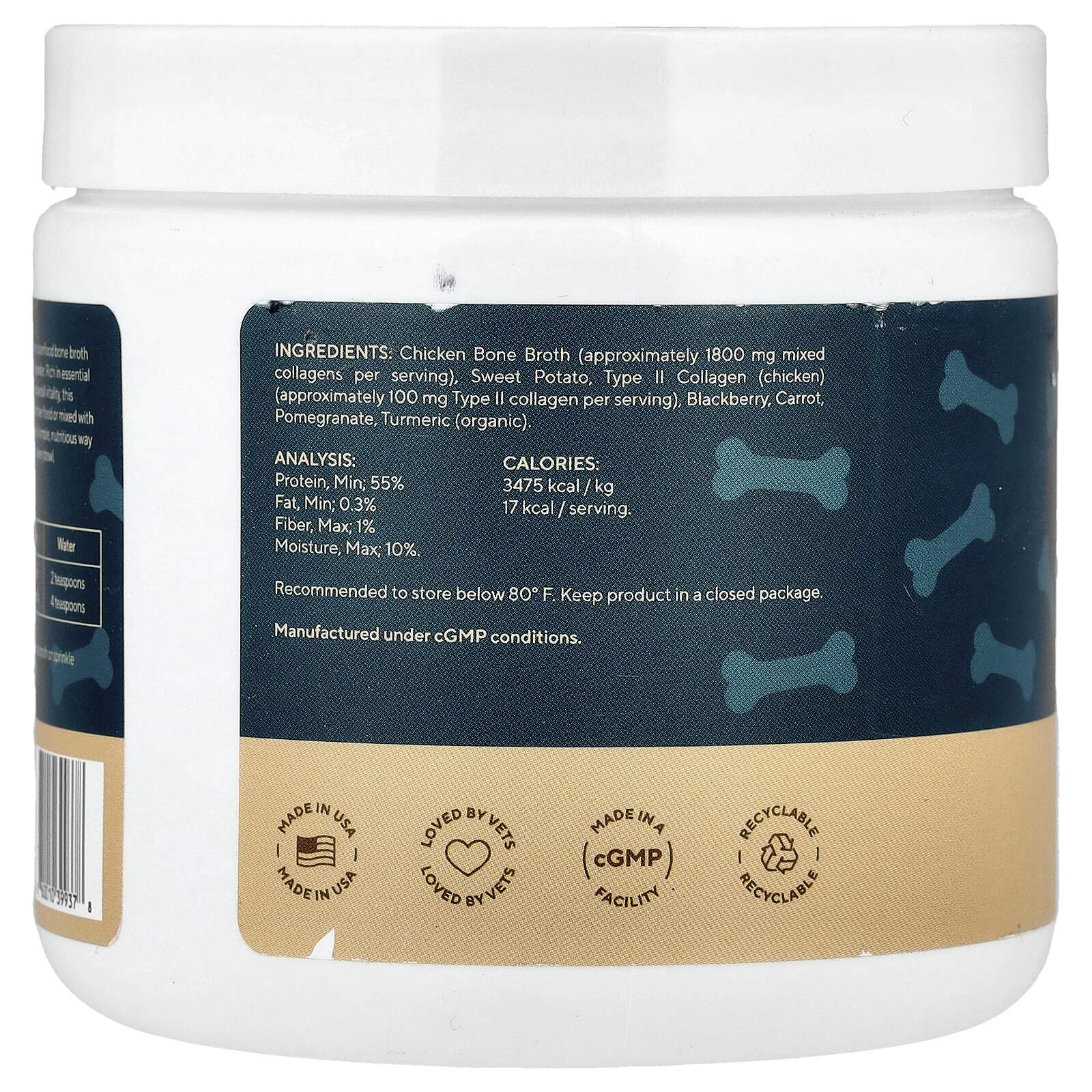 Улучшите время приема пищи вашей собакой с помощью нашего суперпродукта для приготовления костного бульона, изготовленного в виде простого в использовании порошка. Эта универсальная смесь, богатая необходимыми питательными веществами для поддержания здоровья суставов и общей жизнеспособности, может быть добавлена в еду или смешана с водой для получения увлажняющего ароматного бульона. Простой и питательный способ дать вашей собаке вкусный заряд энергии в каждой миске.