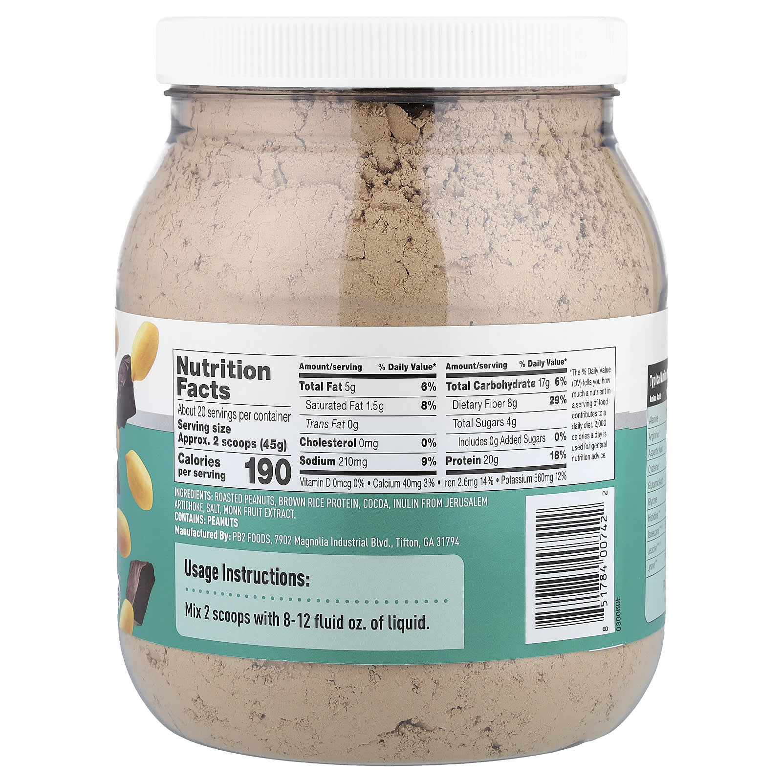 Арахисовый протеин PB2 Performance содержит 20 г полноценного