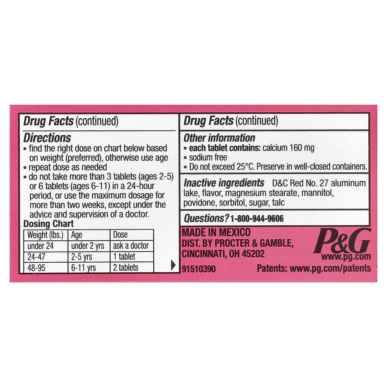 | Вспомогательные ингредиенты: D&C красный 27 алюминий лак, ароматизатор, стеарат магния, маннит, повидон, сорбитол, сахар, тальк. | |