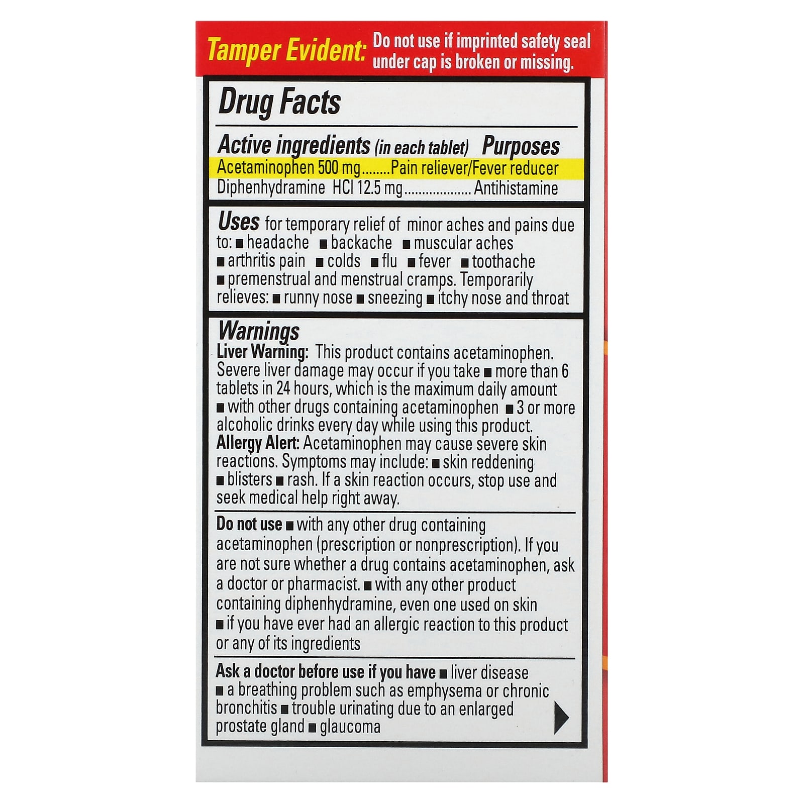 - Не содержит аспирина, обезболивающее и жаростойкое средство/антигистаминный компонент