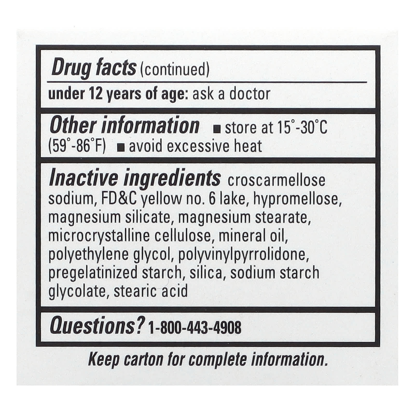 | Вспомогательные ингредиенты: кроскармеллоза натрия, краситель желтый 6 лак, гипромеллоза, силикат магния, стеарат магния, микрокристаллическая целлюлоза, минеральное масло, полиэтиленгликоль, поливинилпирролидон, прежелатинизированный крахмал, диоксид кремния, крахмалгликолят натрия, стеариновая кислота. | |