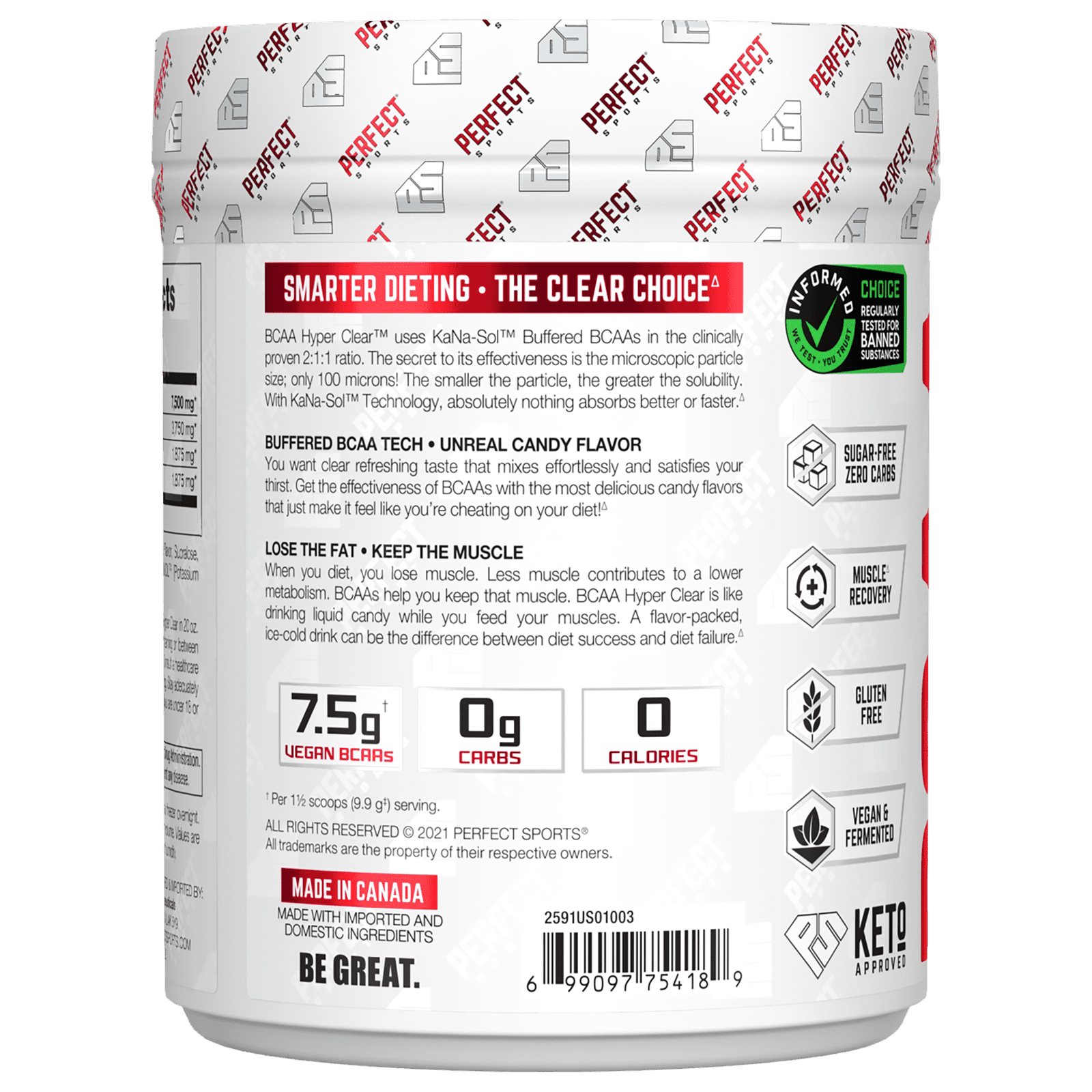 BCAA Hyper Clear ™ использует буферизованные BCAAS KaNa-Sol ™ в клинически подтвержденном соотношении 2: 1: 1. Секрет его эффективности - микроскопический размер частиц; всего 100 микрон! Чем меньше размер частиц, тем выше растворимость. Благодаря технологии KaNa-Sol ™ ничто не усваивается лучше и быстрее◊.