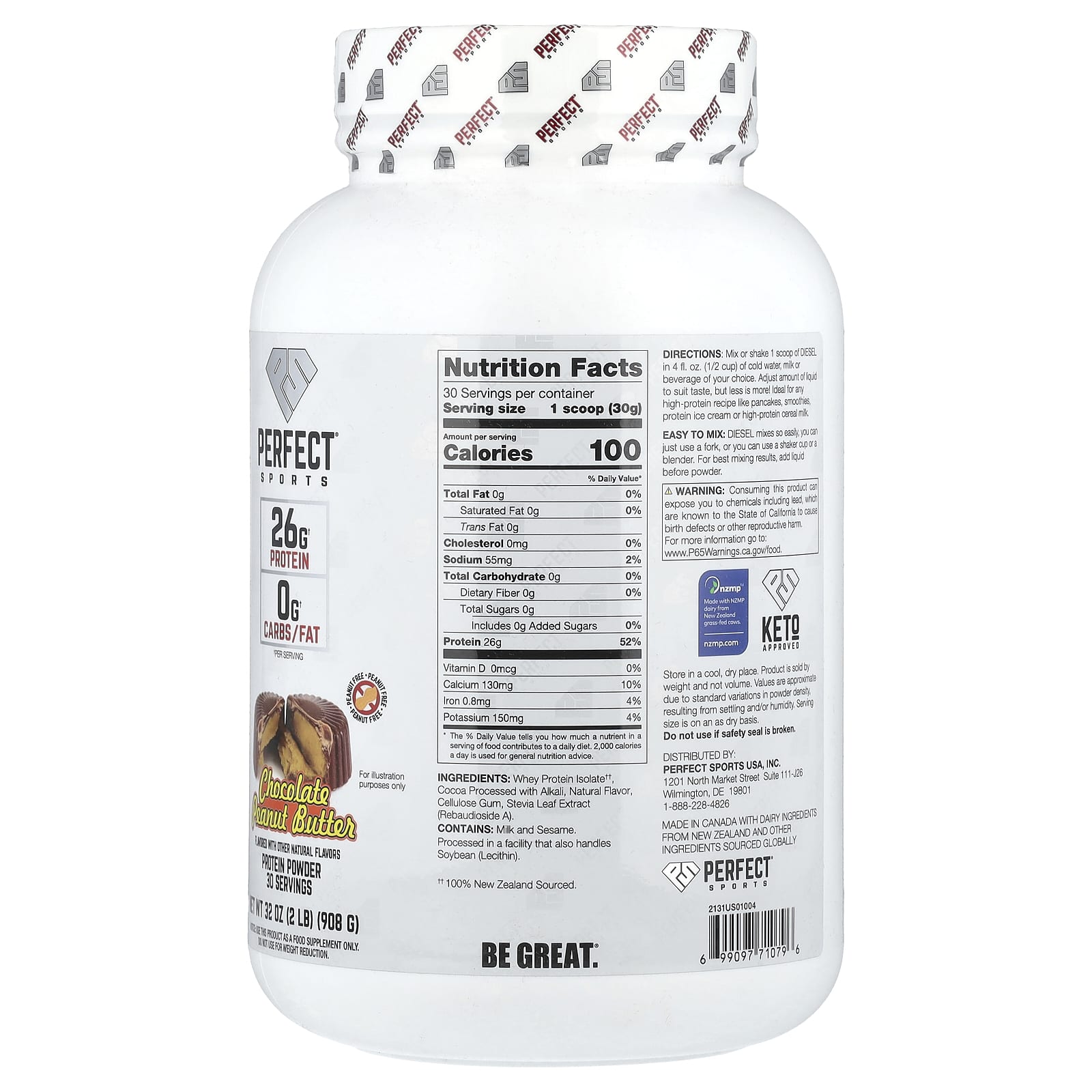 PERFECT Sports, Diesel®, новозеландский сывороточный изолят, шоколад и арахисовая паста, 908 г (2 фунта)