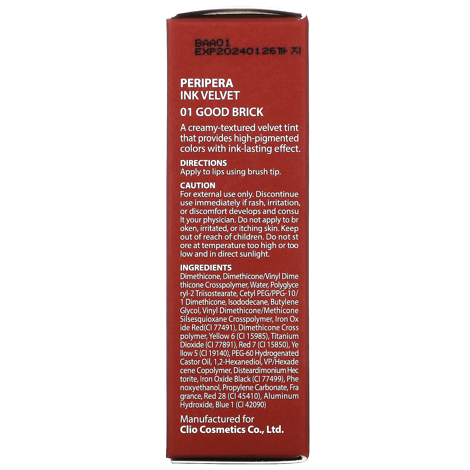 Peripera, Тинт для губ Ink Velvet, 01 Good Brick, 0,14 унции (4 г)