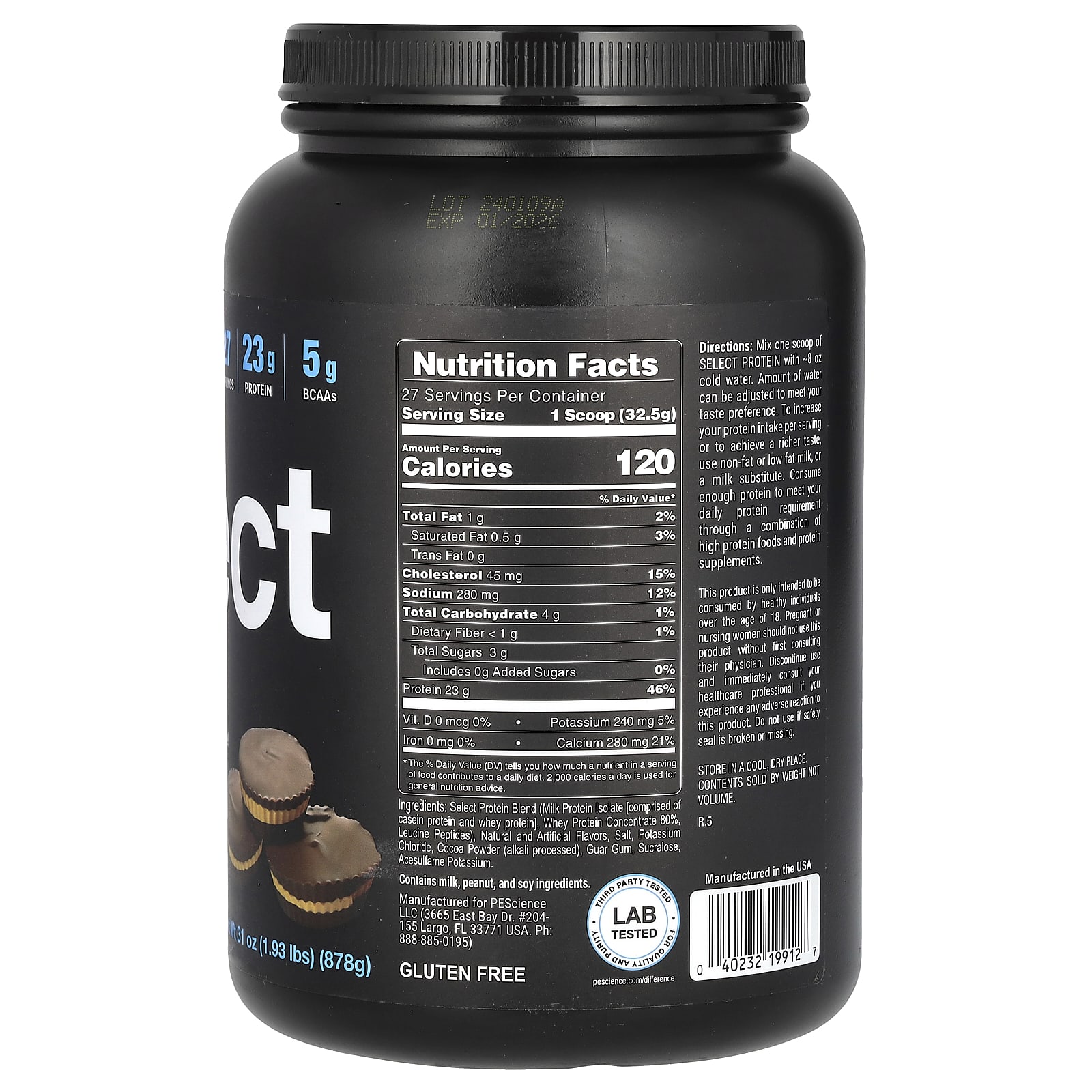 PEScience, Select Protein, протеиновая порошковая смесь для приготовления напитка, чашка с шоколадным и арахисовым маслом, 878 г (1,93 фунта)