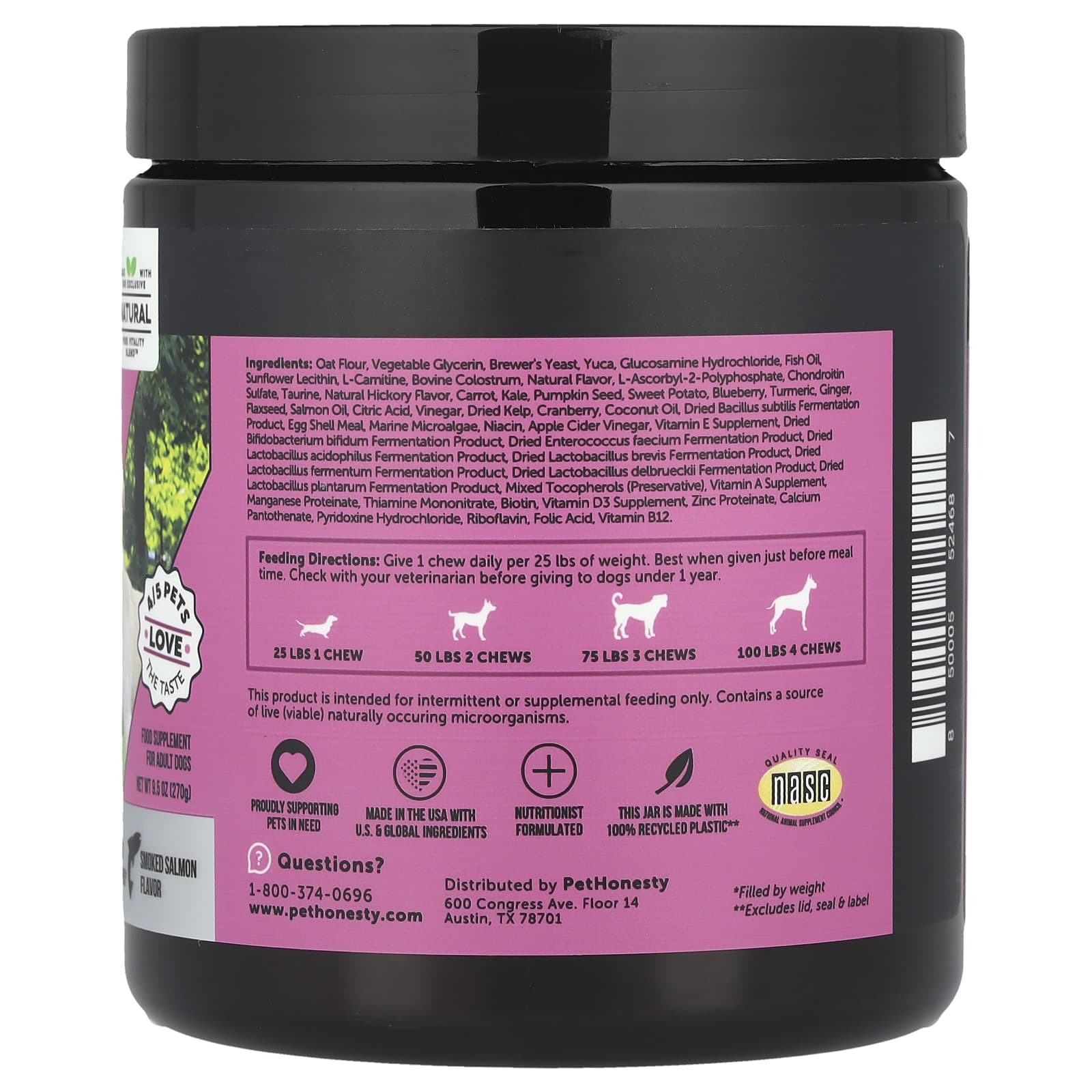 Pet Honesty, Мультивитамины, максимальная сила действия, для взрослых собак, с копченым лососем, 90 жевательных таблеток, 270 г (9,5 унции)