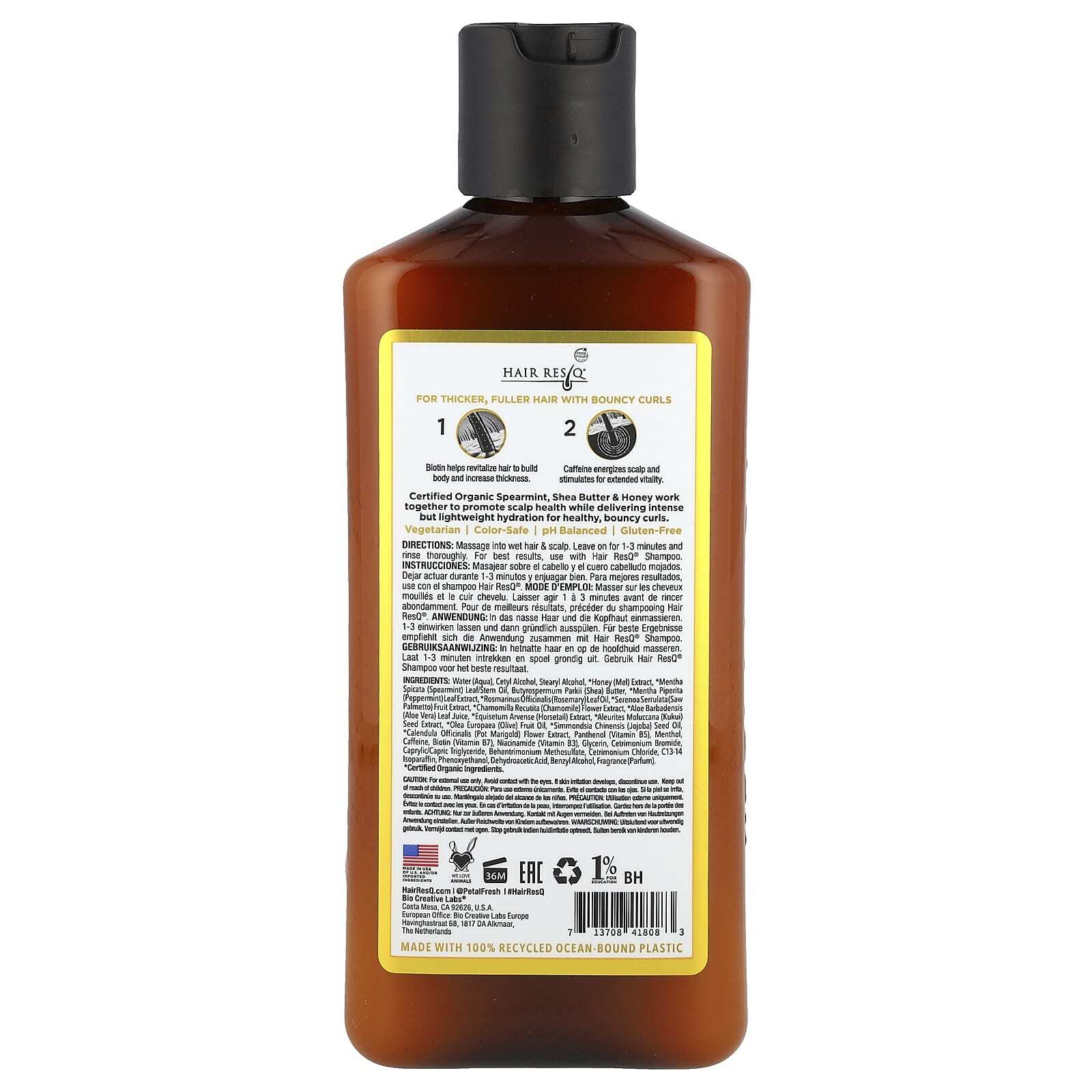 Вода, цетиловый спирт, стеариловый спирт, * экстракт меда (мела), масло листьев / стебля мяты колосистой (Mentha spicata), масло ши (Butyrospermum parkii), экстракт листьев перечной мяты (Mentha piperita), масло из листьев розмарина (Rosmarinus officinalis)*, экстракт плодов серенои серрулаты (Serenoa serrulata), экстракт цветков ромашки (Chamomilla recutita), сок листьев алоэ вера (Aloe barbadensis)*, экстракт хвоща полевого (Equisetum arvense)*, экстракт семян кукуи (Aleurites moluccana), оливковое масло (Olea europaea), масло семян жожоба (Simmondsia chinensis)*, экстракт цветков календулы лекарственной (Calendula officinalis), пантенол (витамин B5), ментол, кофеин, биотин (витамин B7), ниацинамид (витамин B3), глицерин, цетримония бромид, каприловый/каприновый триглицерид, бегентримония метосульфат, цетримония хлорид, c13-14 изопарафин, феноксиэтанол, дегидроуксусная кислота, бензиловый спирт, отдушка (парфюмерная композиция).