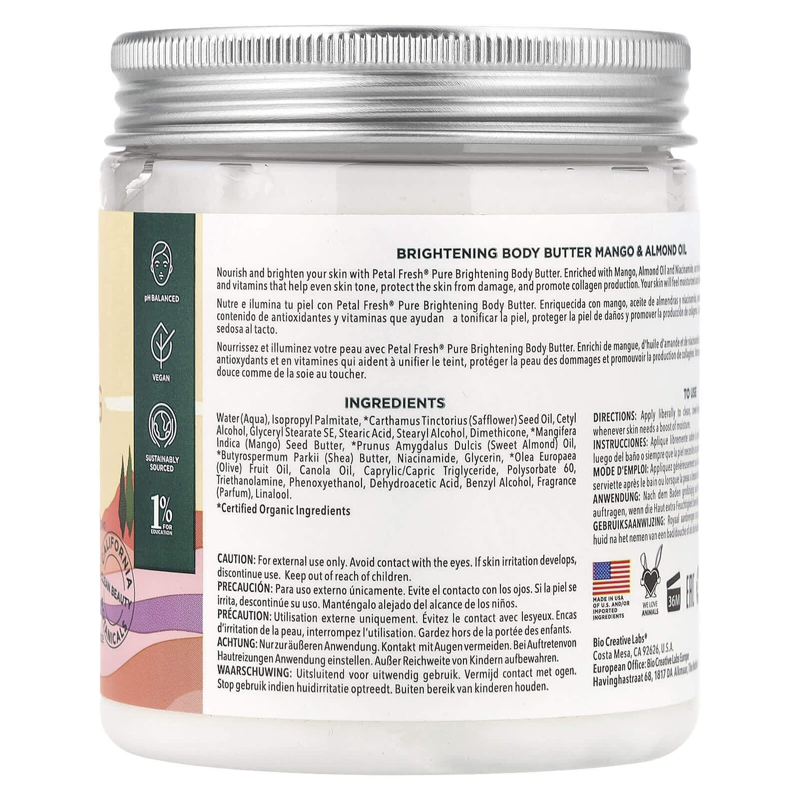 Питайте и осветляйте кожу с помощью очищающего масла для тела Petal Fresh®. Наша формула, обогащенная манго, миндальным маслом и ниацинамидом, богата антиоксидантами и витаминами, которые помогают выровнять тон кожи, защищают ее от повреждений и способствуют выработке коллагена. Ваша кожа будет увлажненной и гладкой на ощупь.