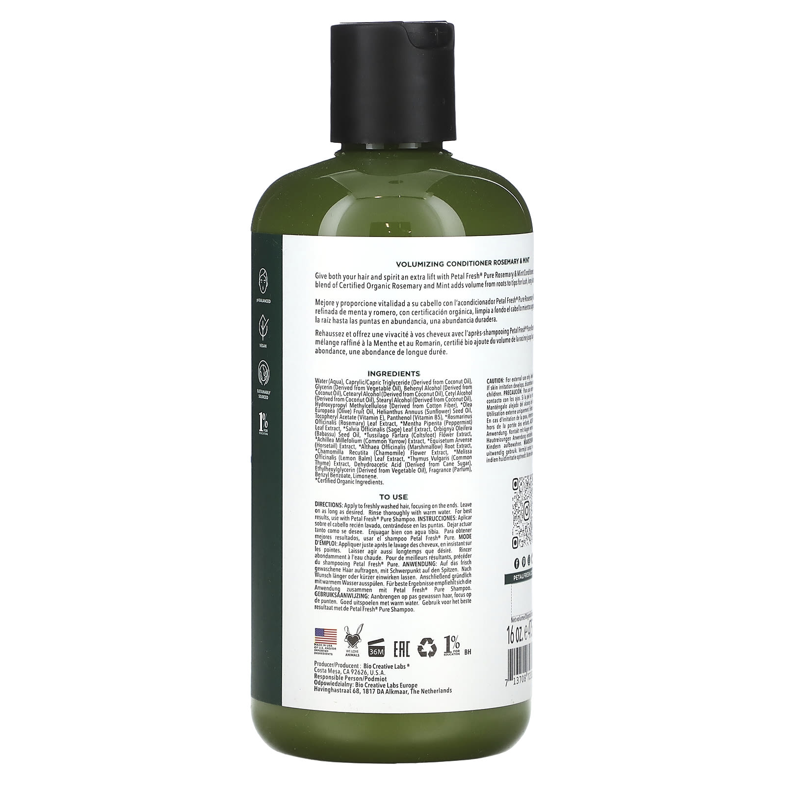 Подарите своим волосам дополнительную поддержку с помощью кондиционера Petal Fresh® с розмарином и мятой. Омолаживающая смесь сертифицированных органических розмарина и мяты увеличивает объем от корней до кончиков, придавая коже пышность и продолжительный эффект.