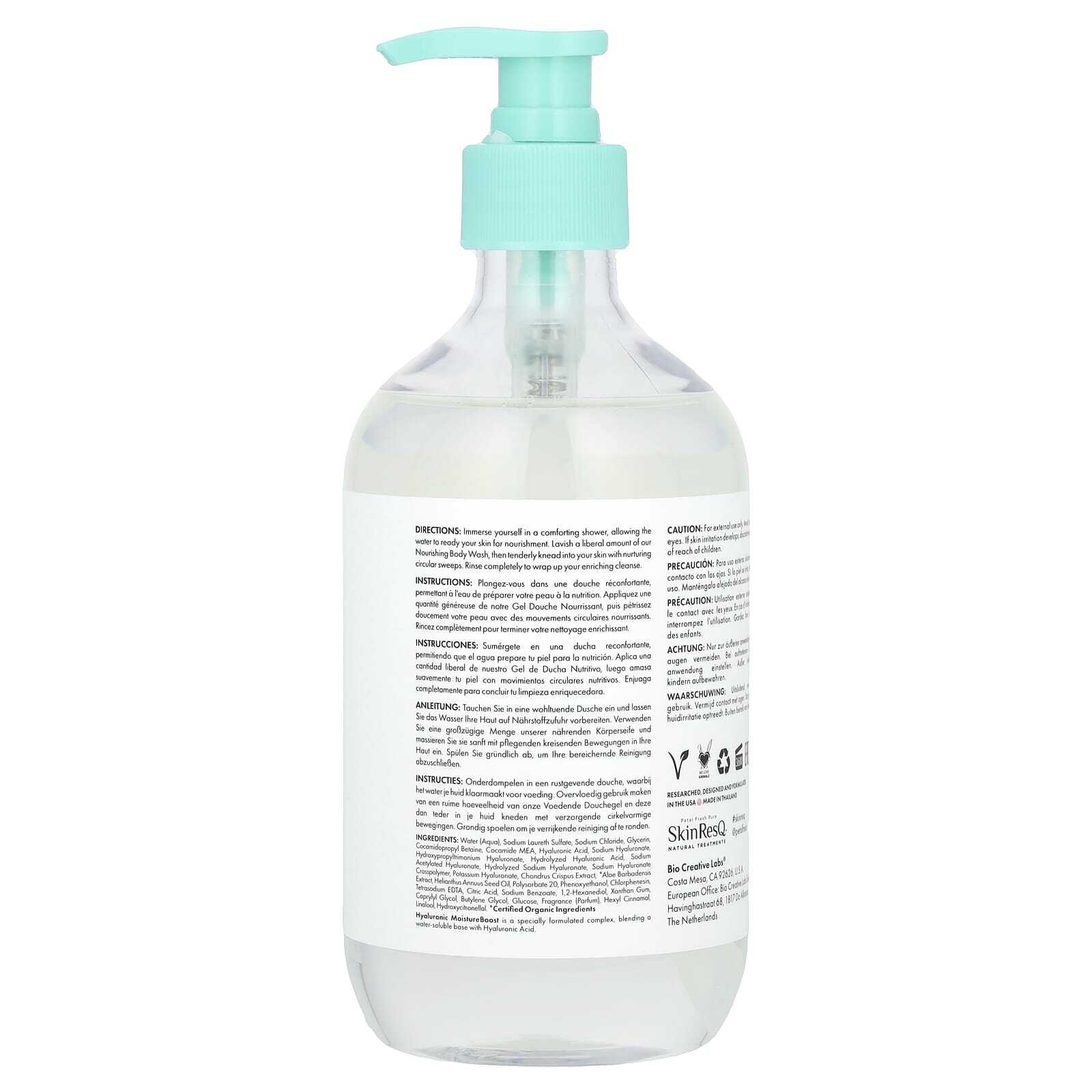Вода (вода), лауретсульфат натрия, хлорид натрия, глицерин, кокамидопропил бетаин, кокамид МЭА, гиалуроновая кислота, гиалуронат натрия, гидроксипропилтримония гиалуронат, гидролизованная гиалуроновая кислота, ацетилированный гиалуронат натрия, гидролизованный гиалуронат натрия, кроссполимер гиалуроната натрия, гиалуронат калия, экстракт хондруса (Chondrus crispus), * экстракт алоэ вера, масло семян подсолнечника (Helianthus annuus), полисорбат 20, феноксиэтанол, хлорфенезин, тетранатрий ЭДТА, лимонная кислота, бензоат натрия, 1,2-гександиол, ксантановая камедь, каприлил гликоль, бутиленгликоль, глюкоза, отдушка (парфюмерная композиция), гексил циннамал, линалоол, гидроксицитронеллаль.