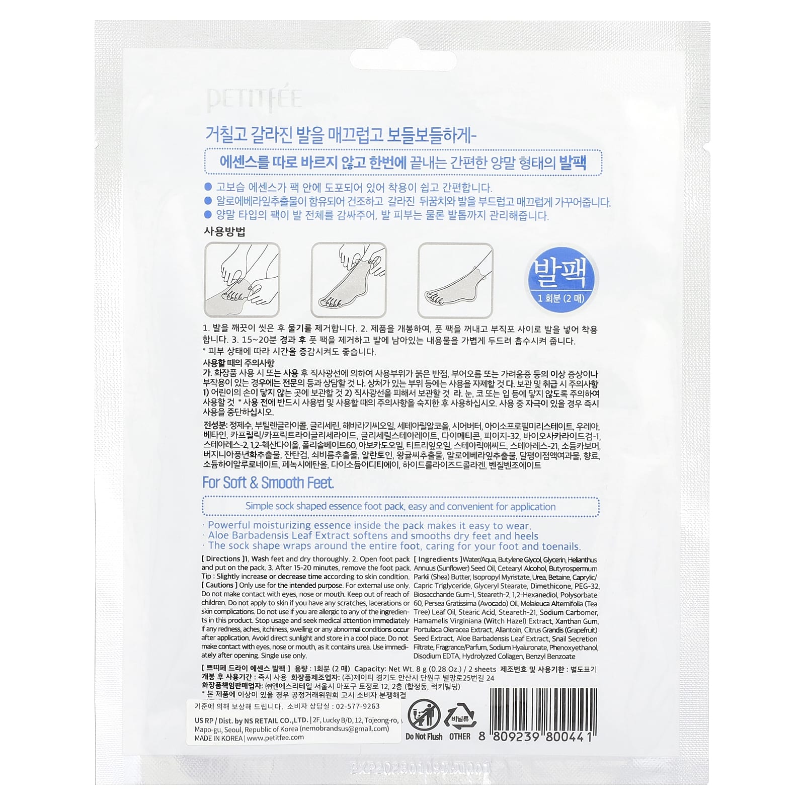Petitfee, Dry Essence, маска для ног, 1 пара, 8 г (0,28 унции)